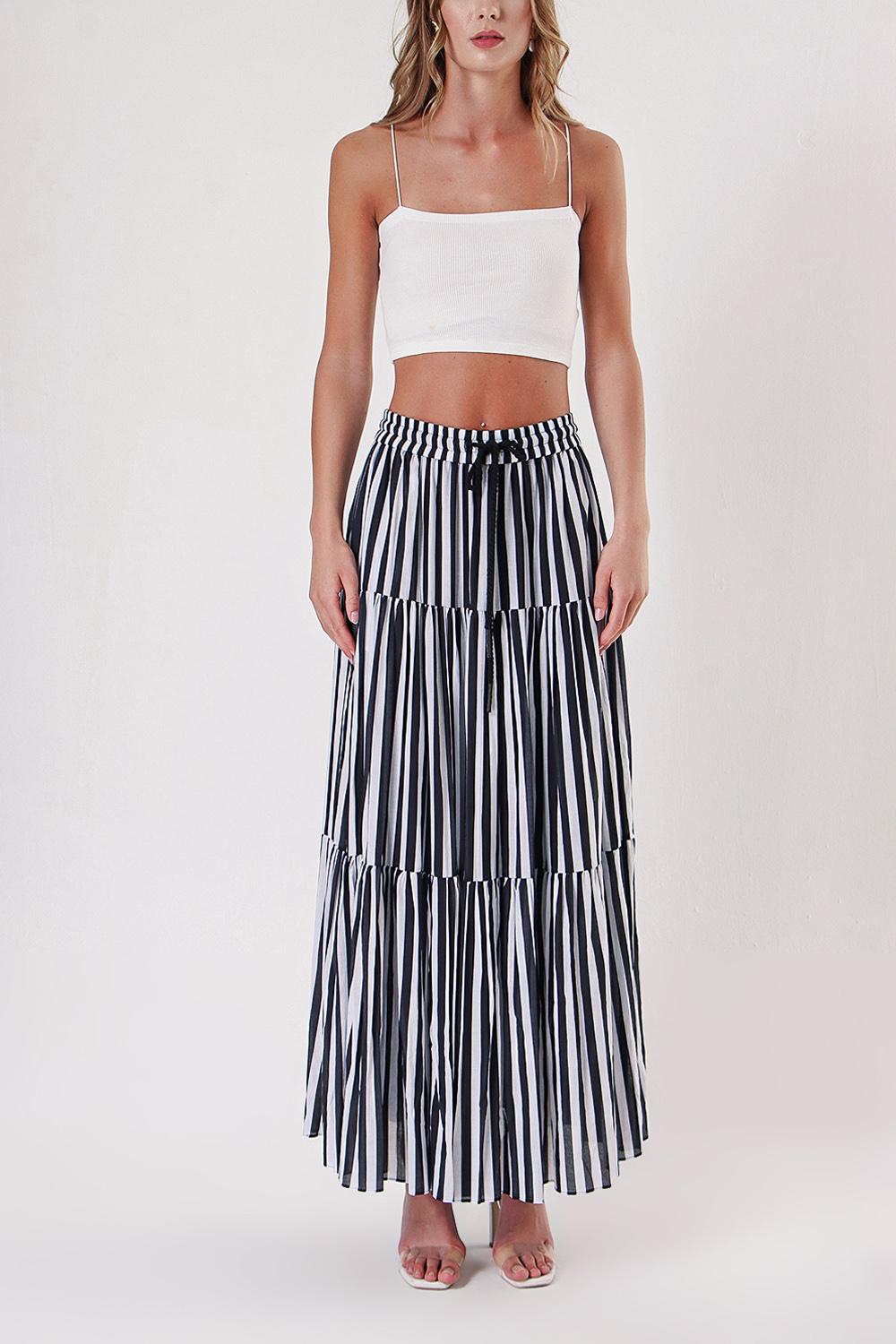 Çizgili Beli lastikli büzgülü uzun etek 81260