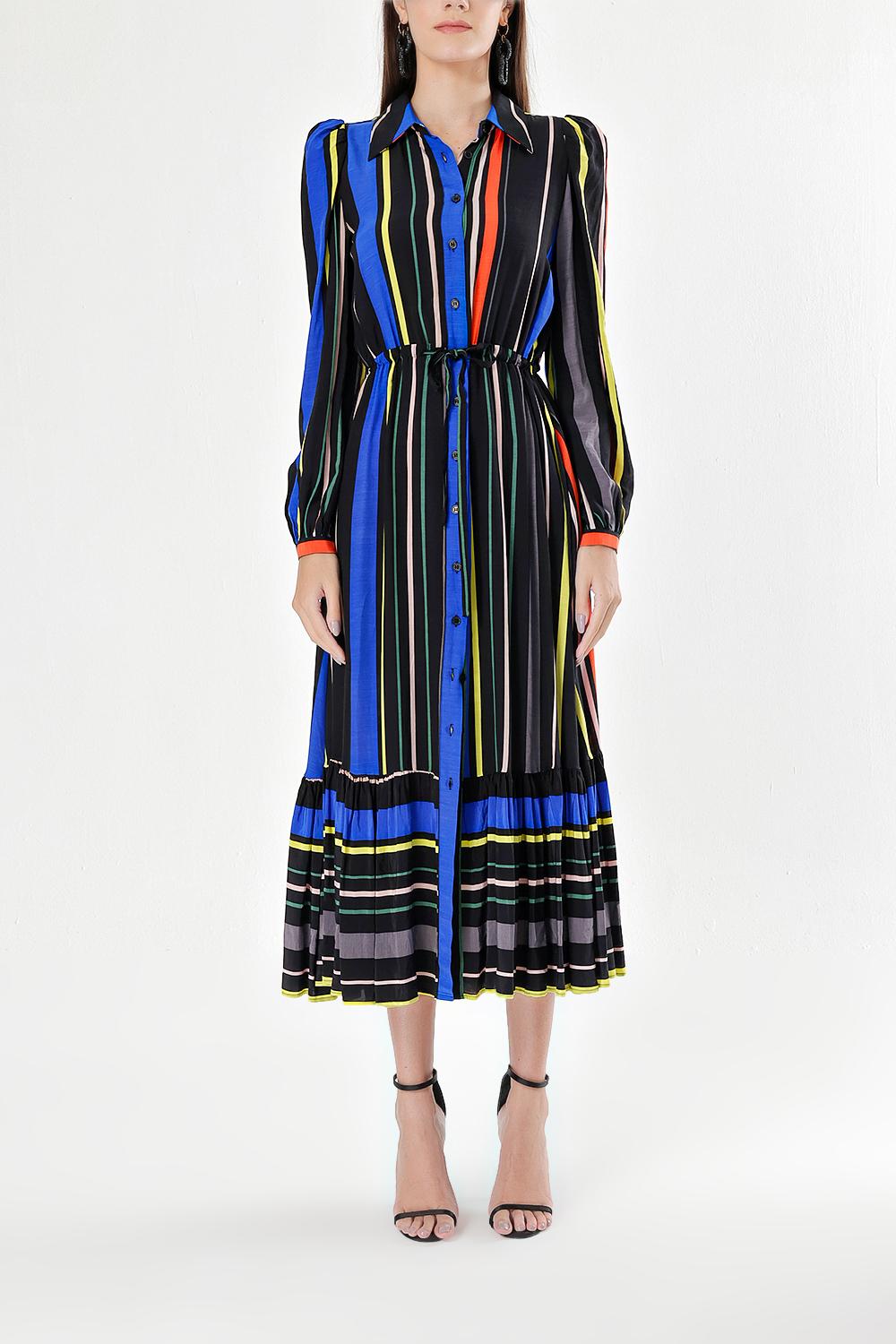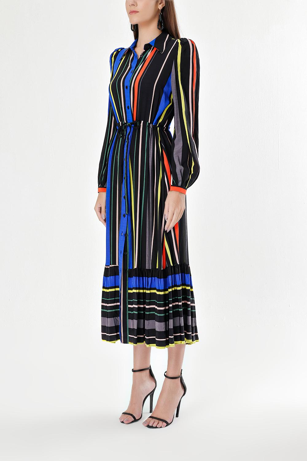 Çizgili Büzgülü gömlek elbise 94041