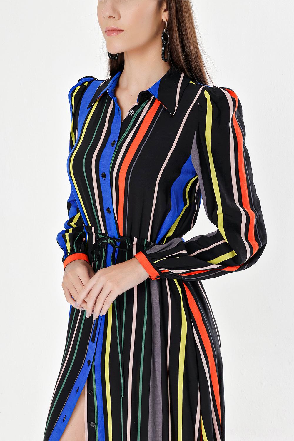 Çizgili Büzgülü gömlek elbise 94041