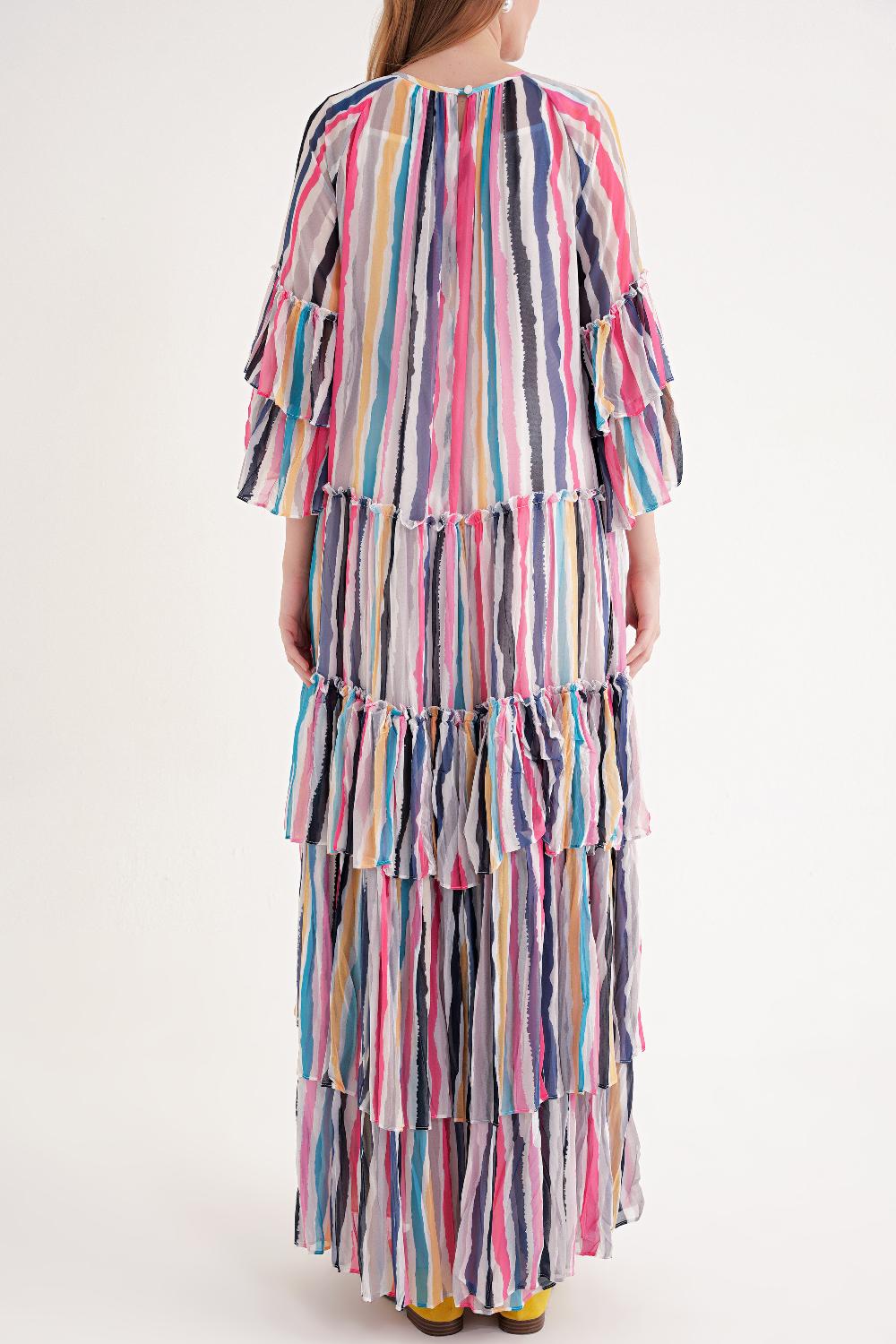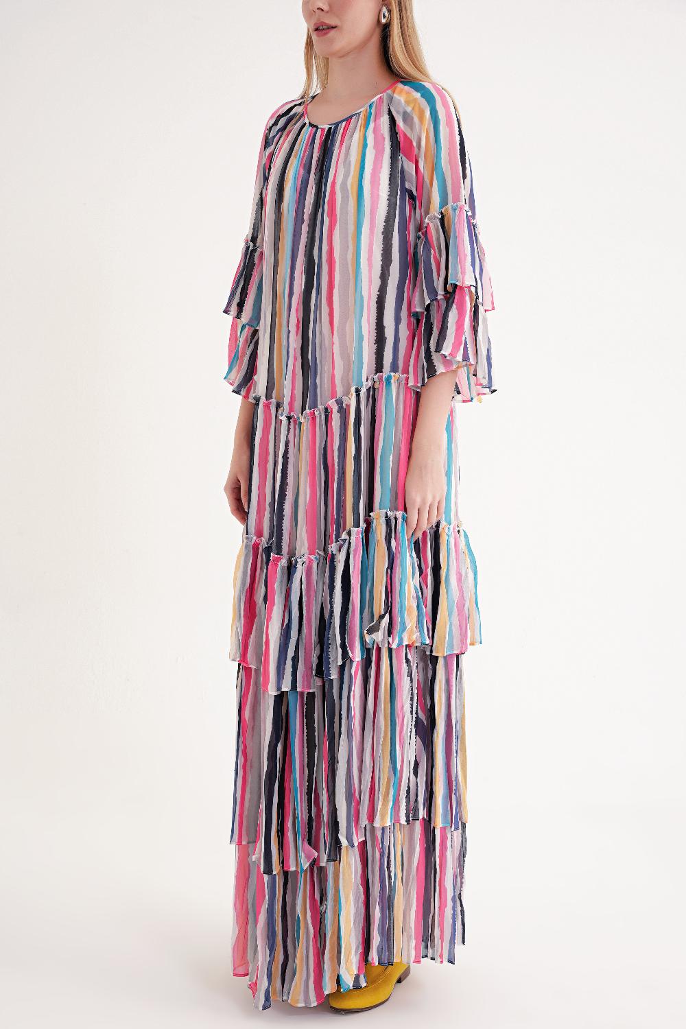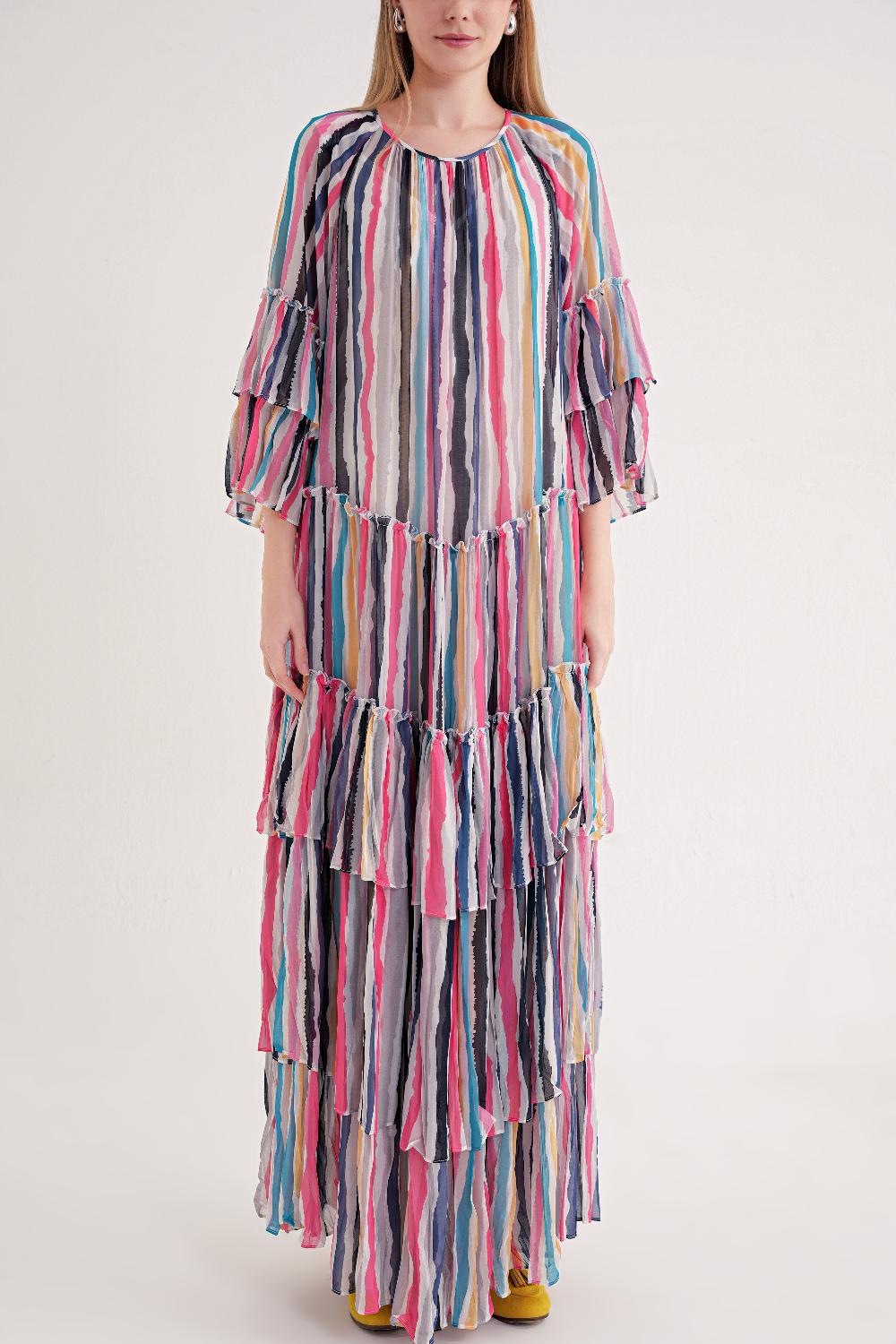 Çizgili Büzgülü katlı bol kesim uzun elbise 94452