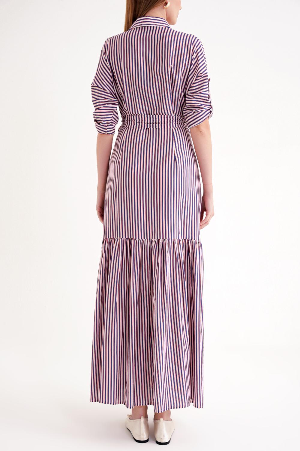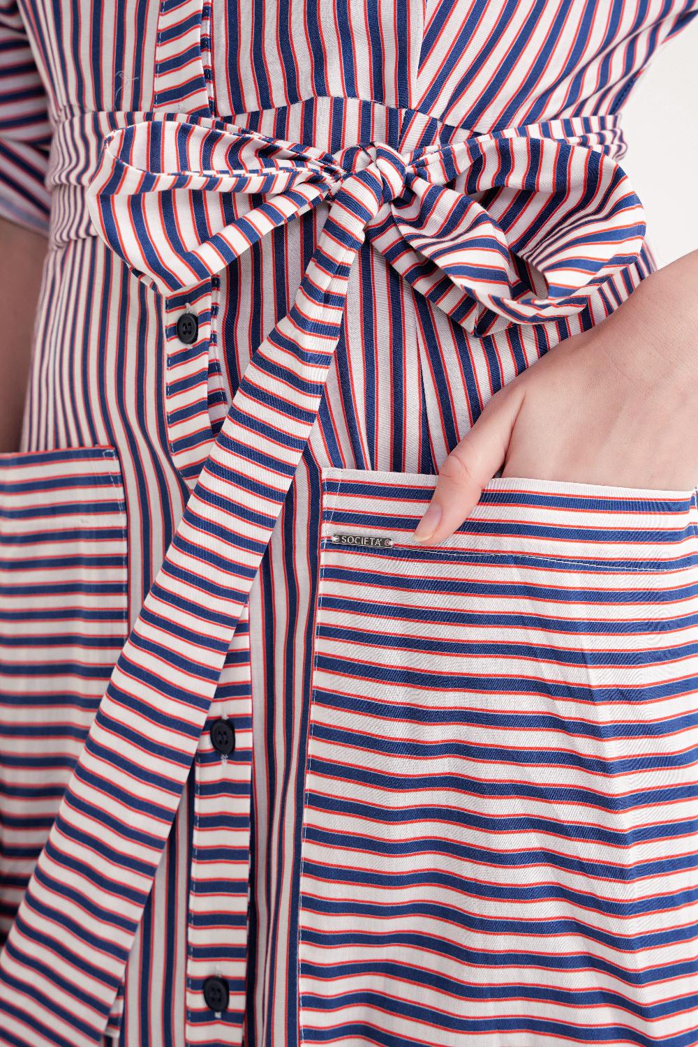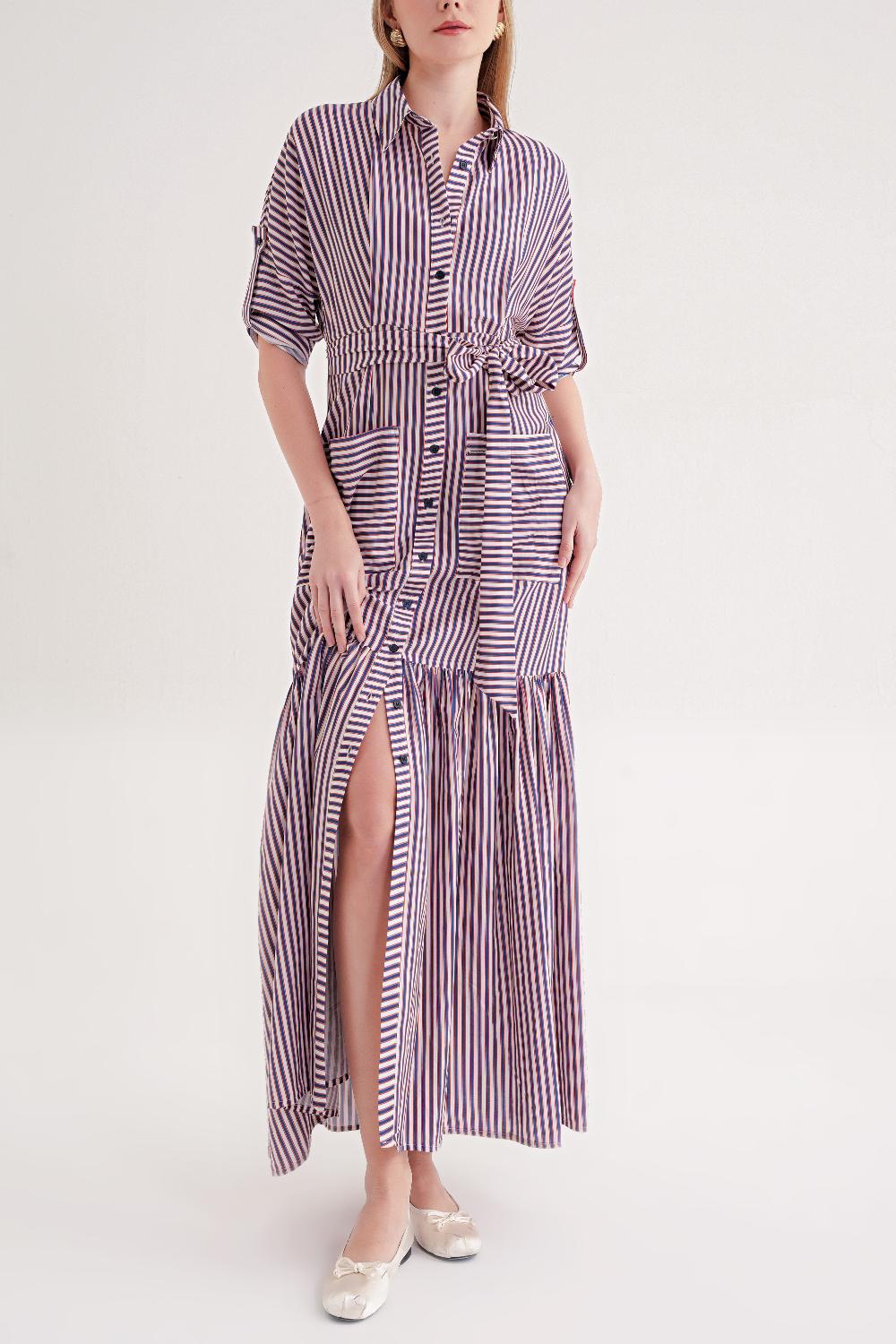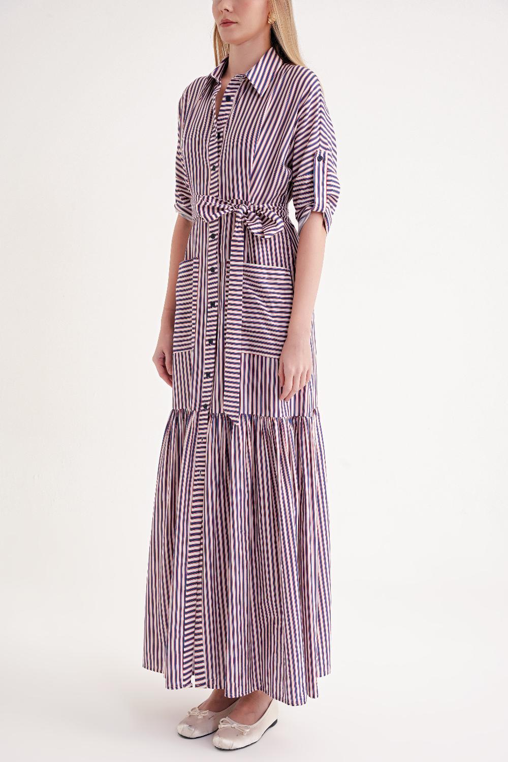 Çizgili Büzgülü uzun gömlek elbise 94523