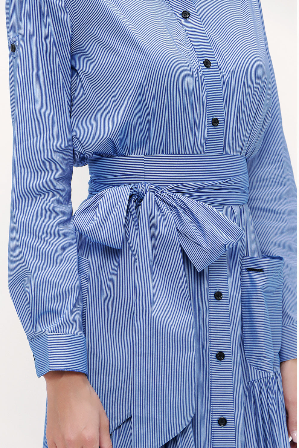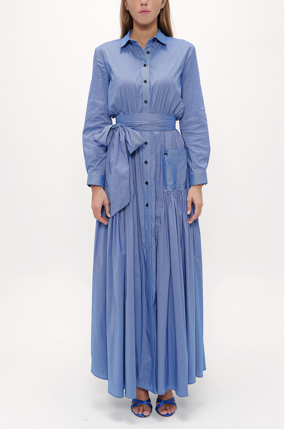 Çizgili Cepli lastikli uzun elbise 92606