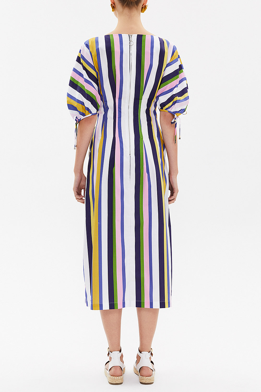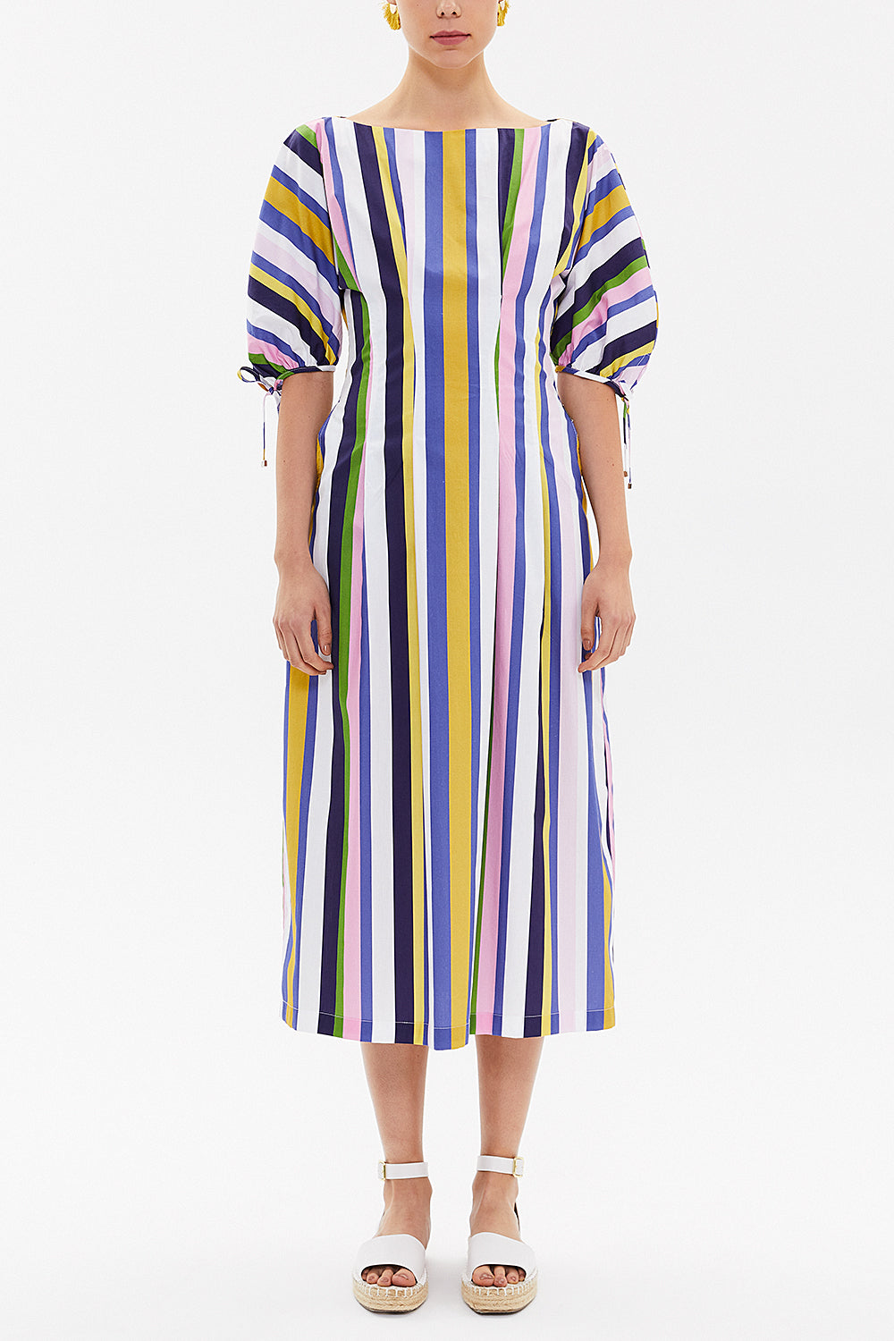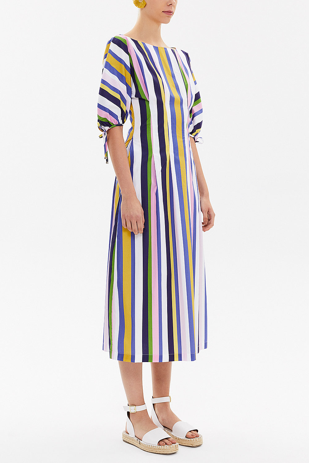 Çizgili Yarasa kol fermuarlı midi elbise 92690