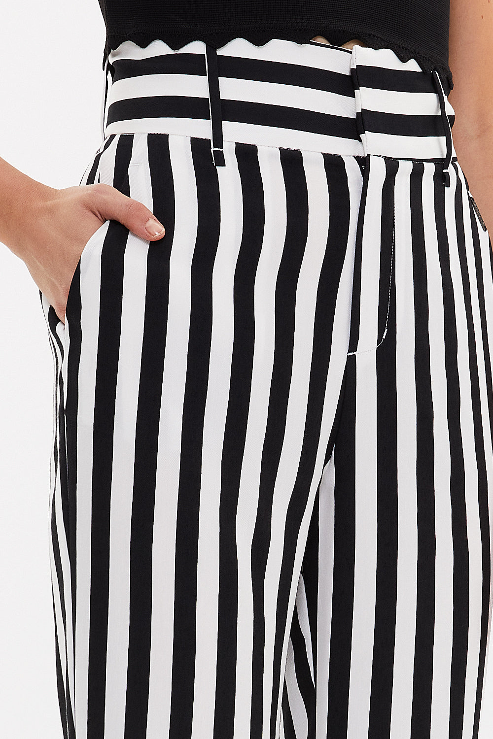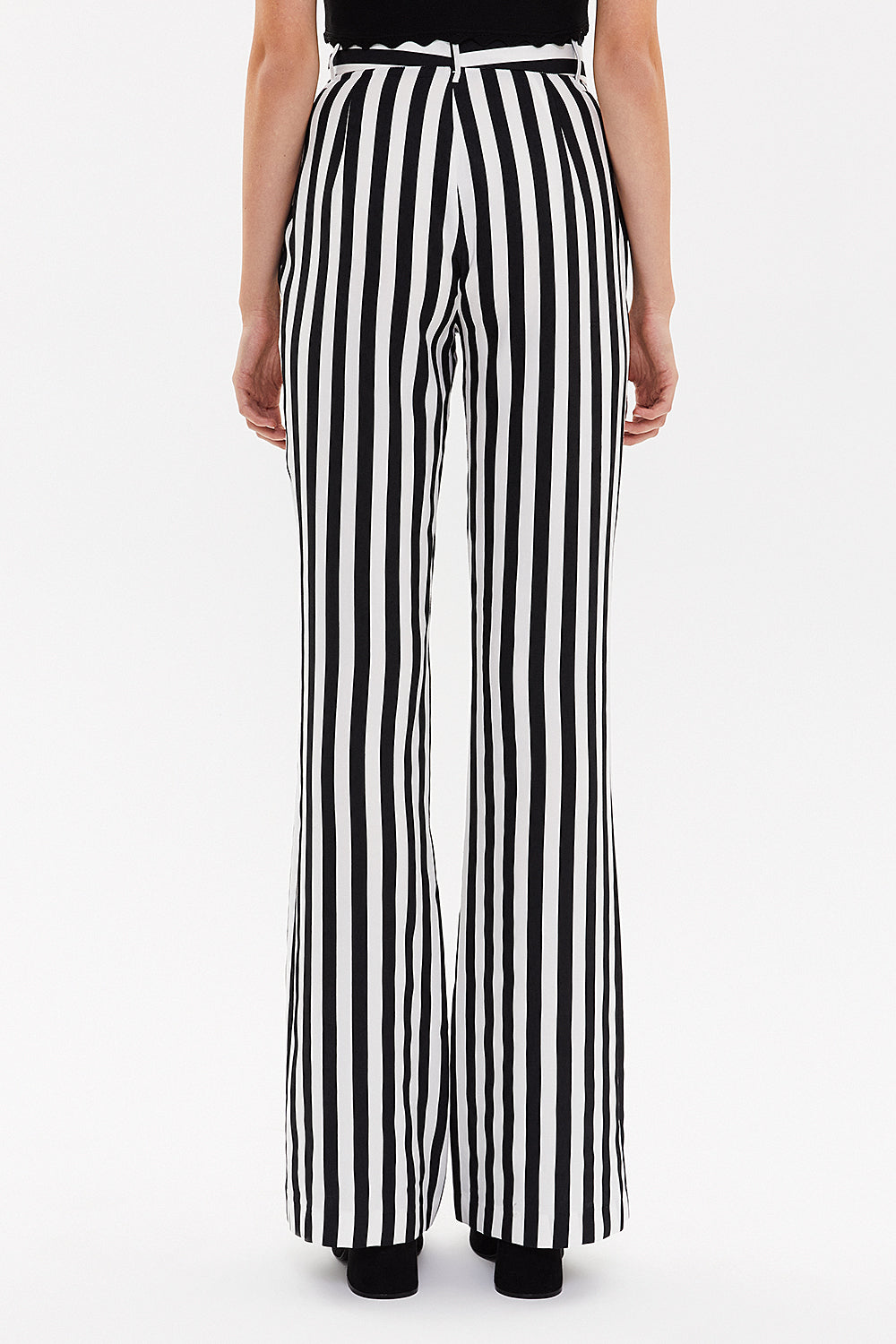 Çizgili Yüksek bel ispanyol paça pantolon 41330