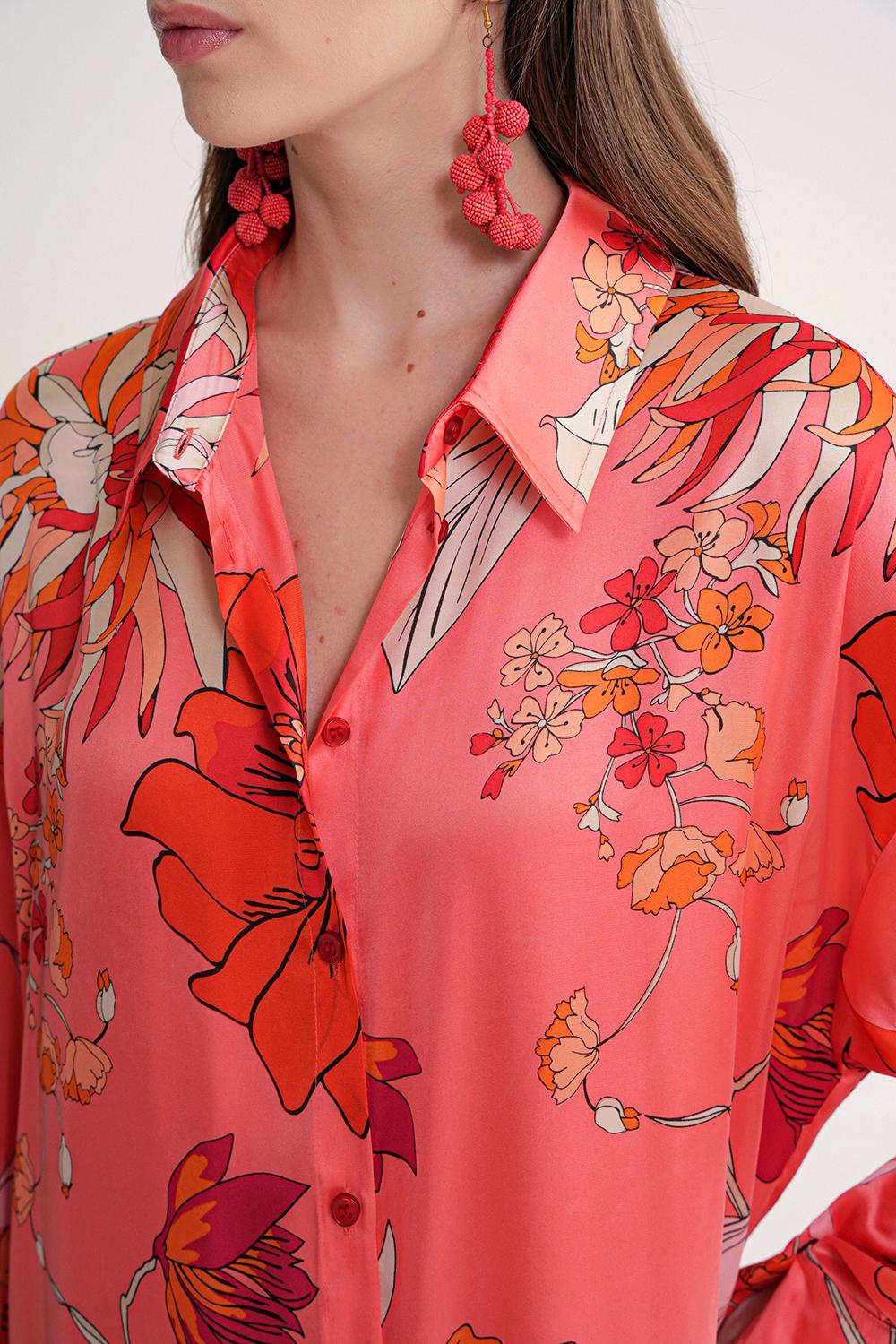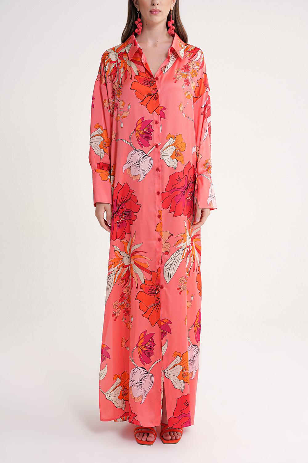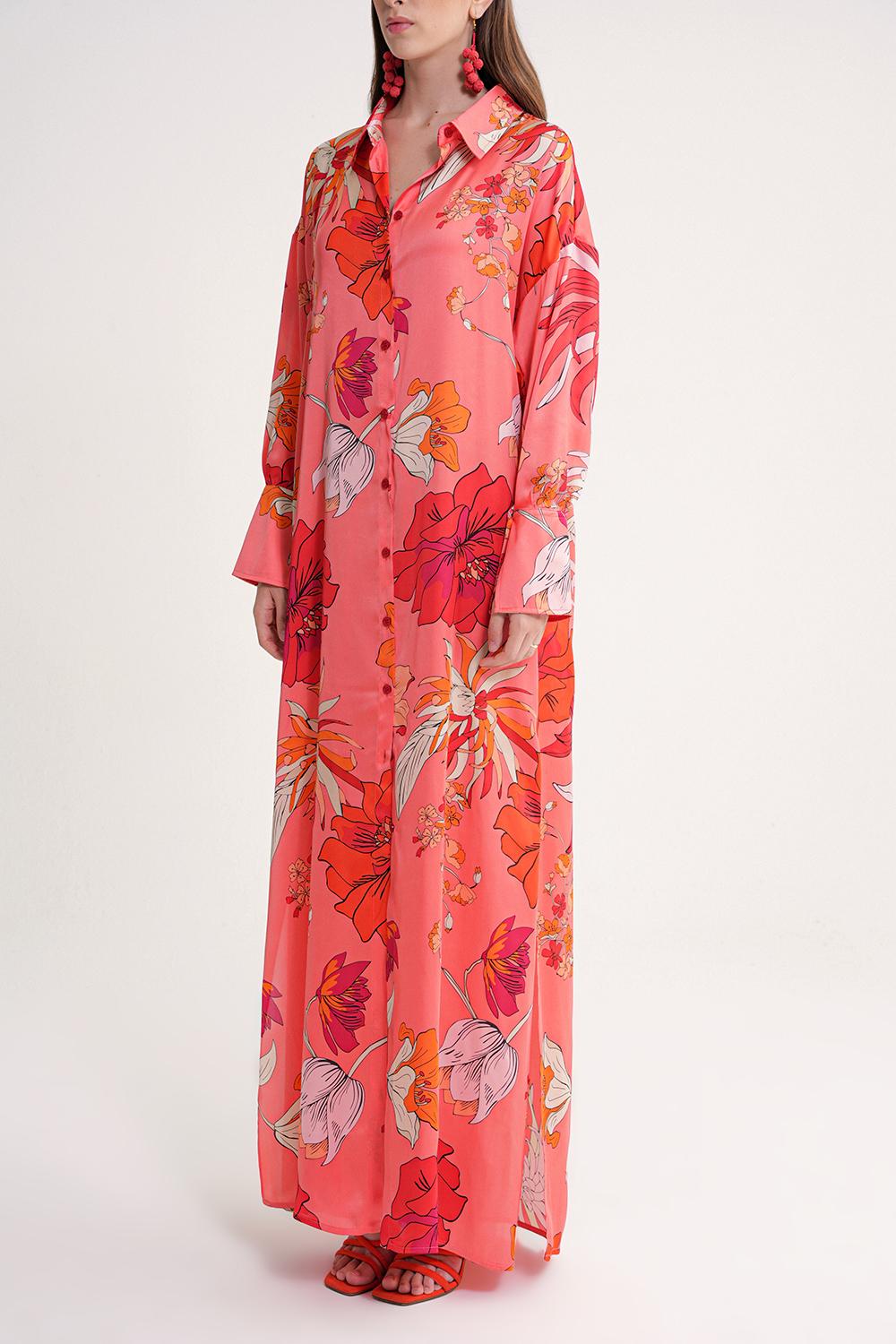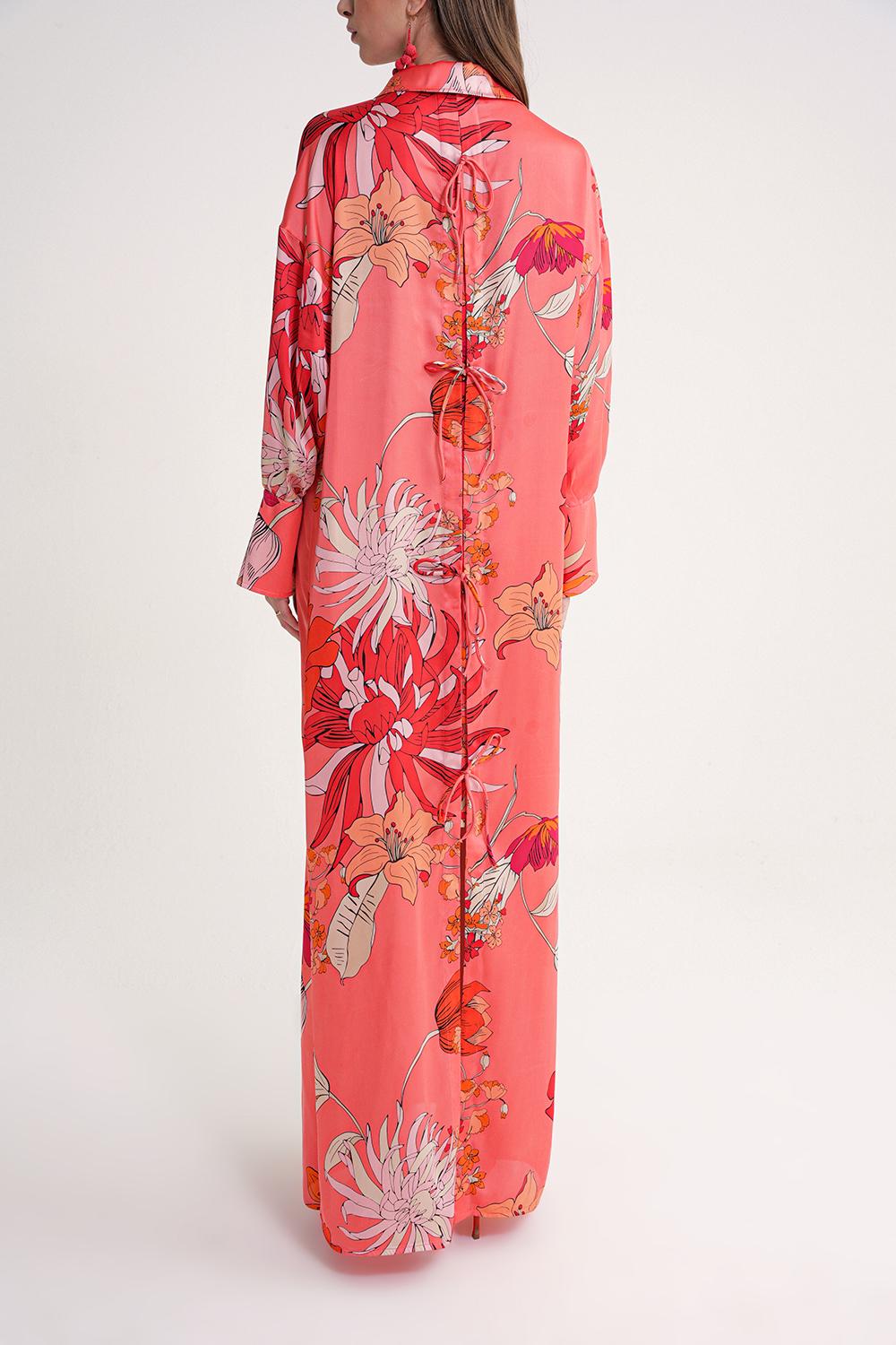 Desenli Arkası bağcık detaylı gömlek elbise 94579