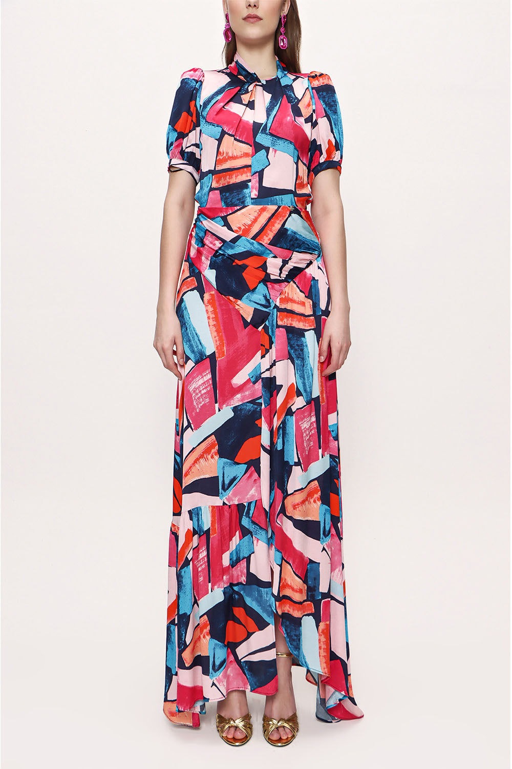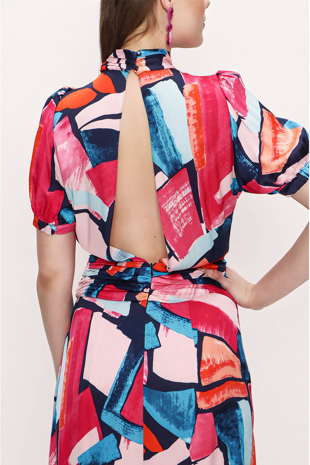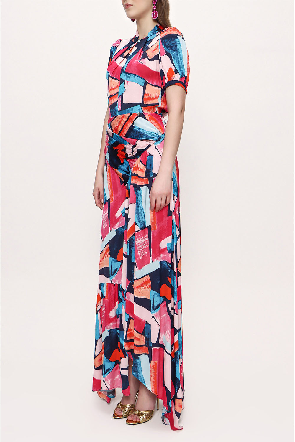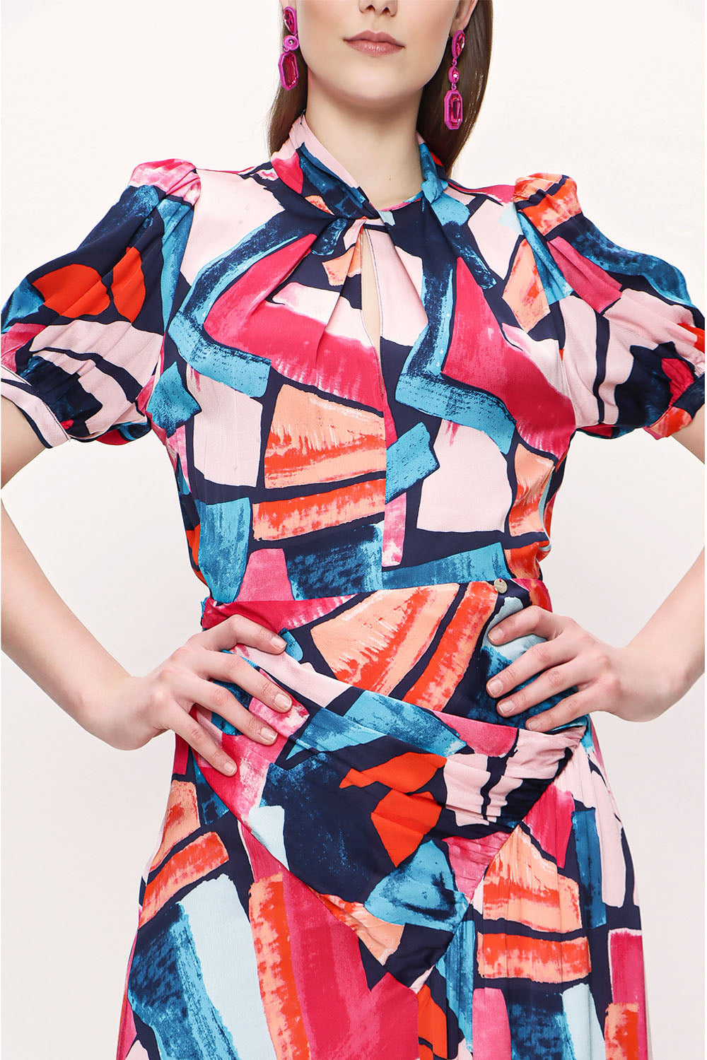 Desenli Asimetrik kesim elbise 93384