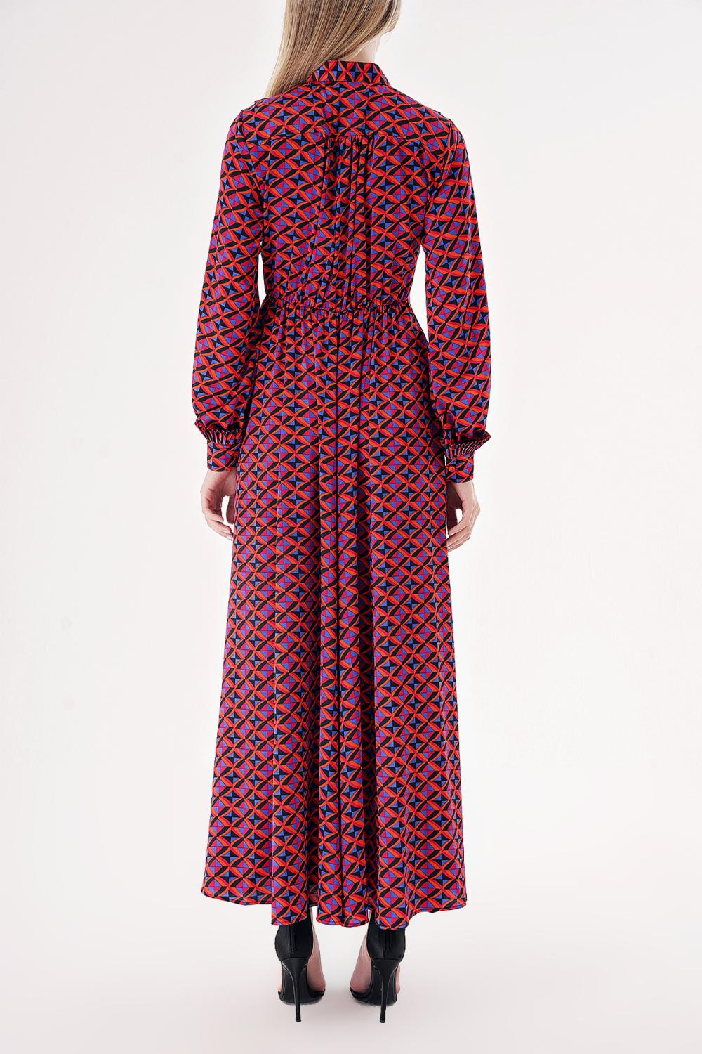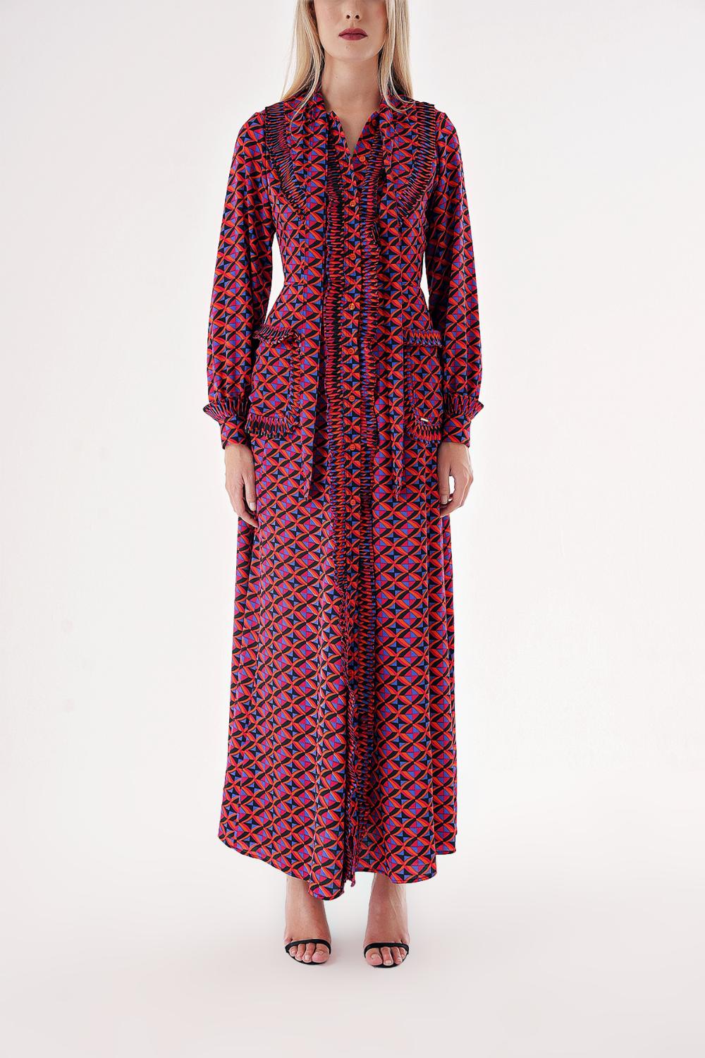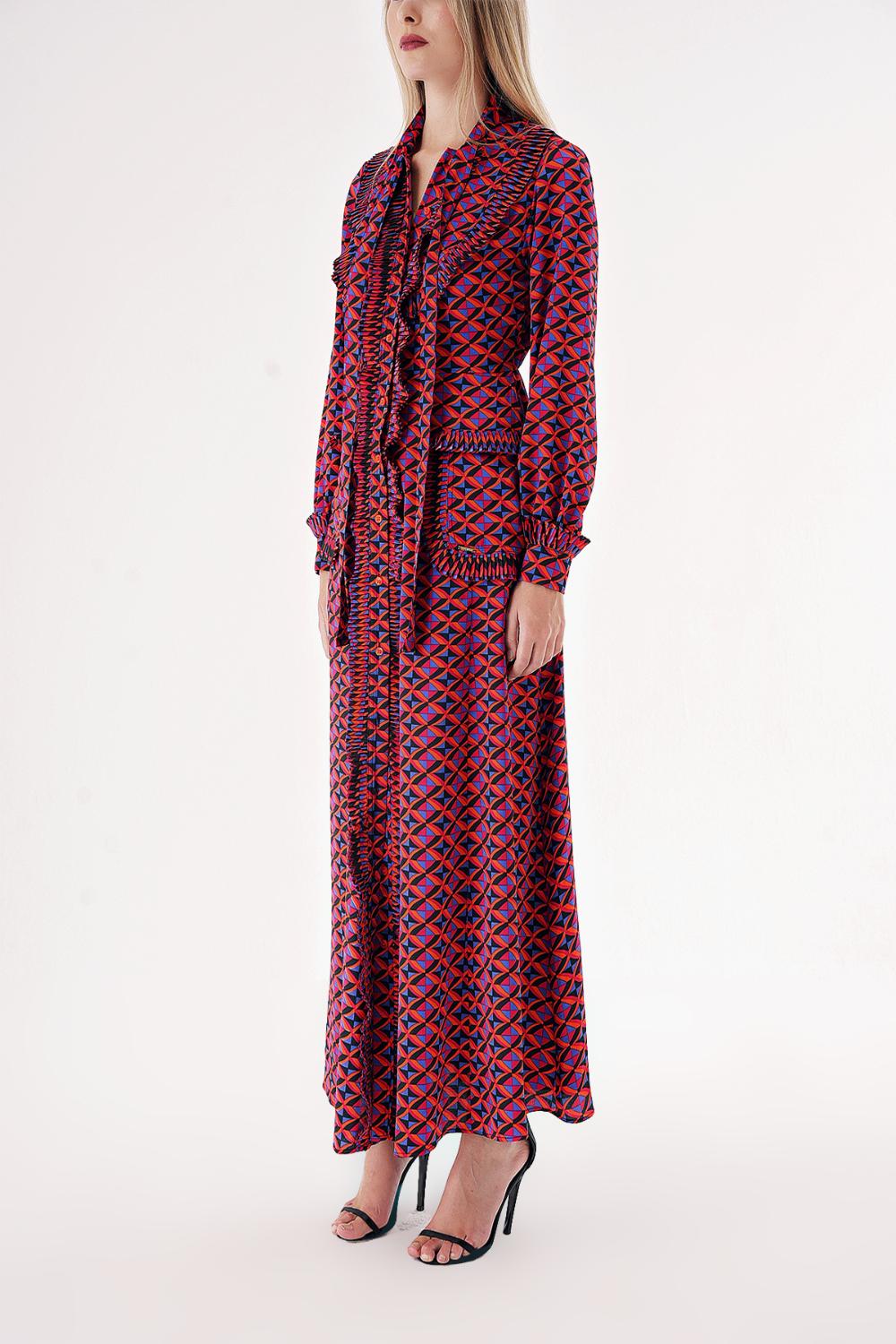 Desenli Balon kol yakası bağcıklı elbise 94525