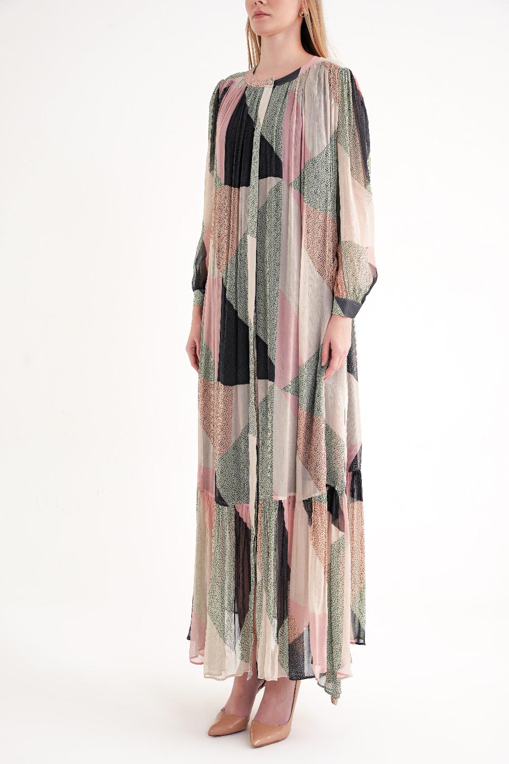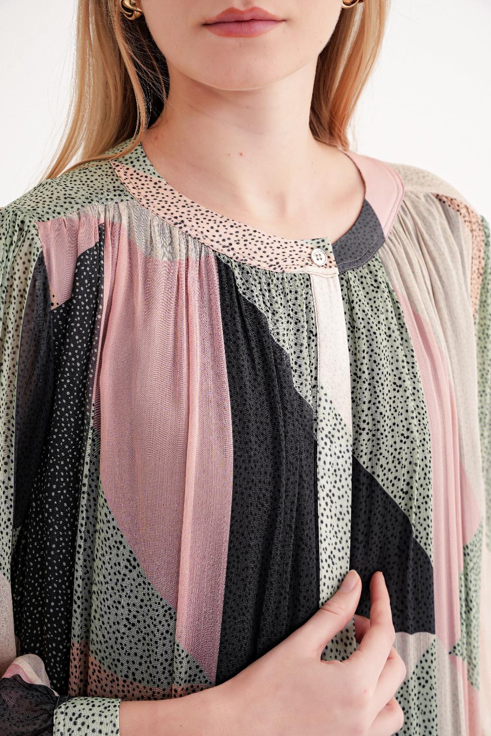 Desenli Büzgülü bol kesim gömlek elbise 94311