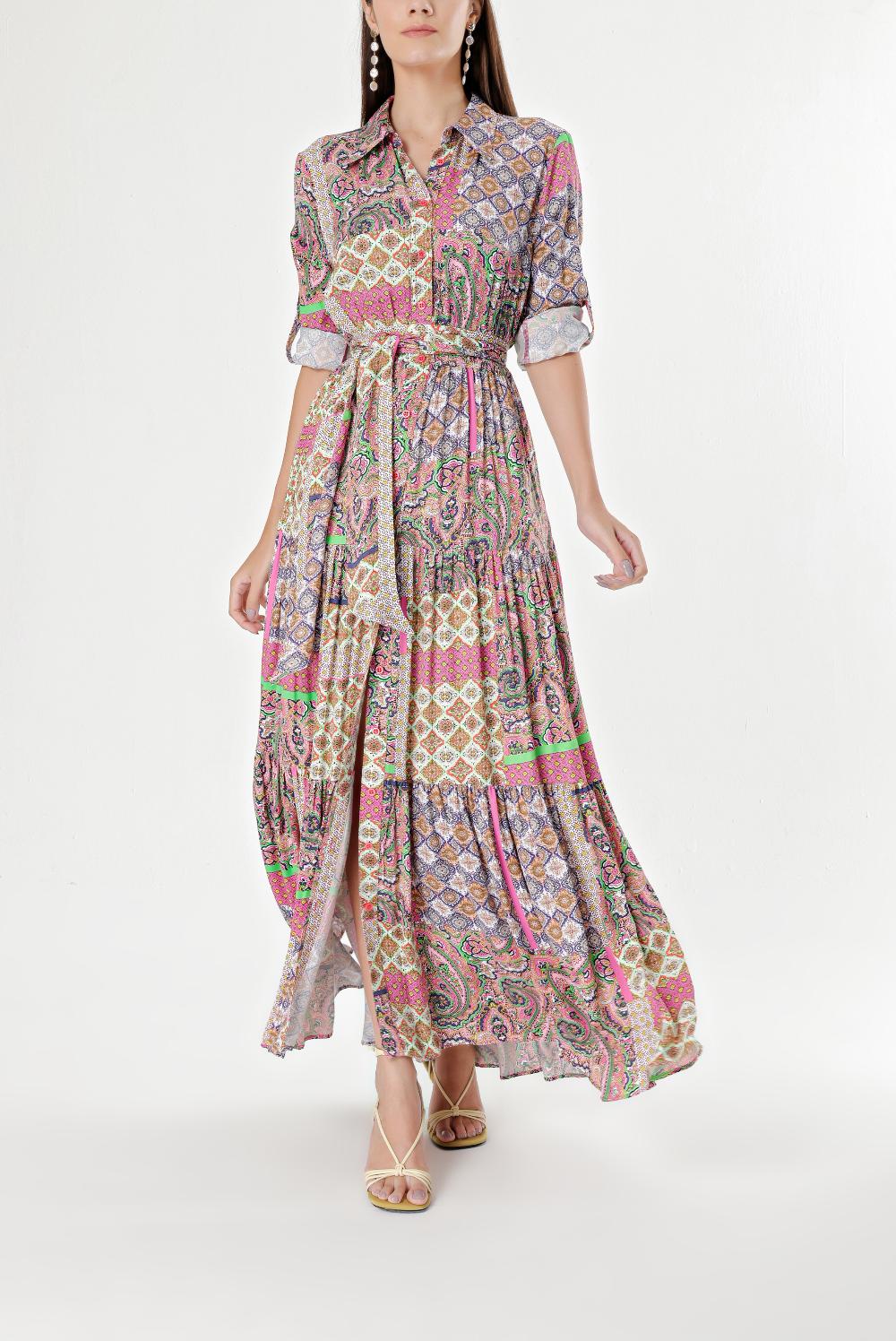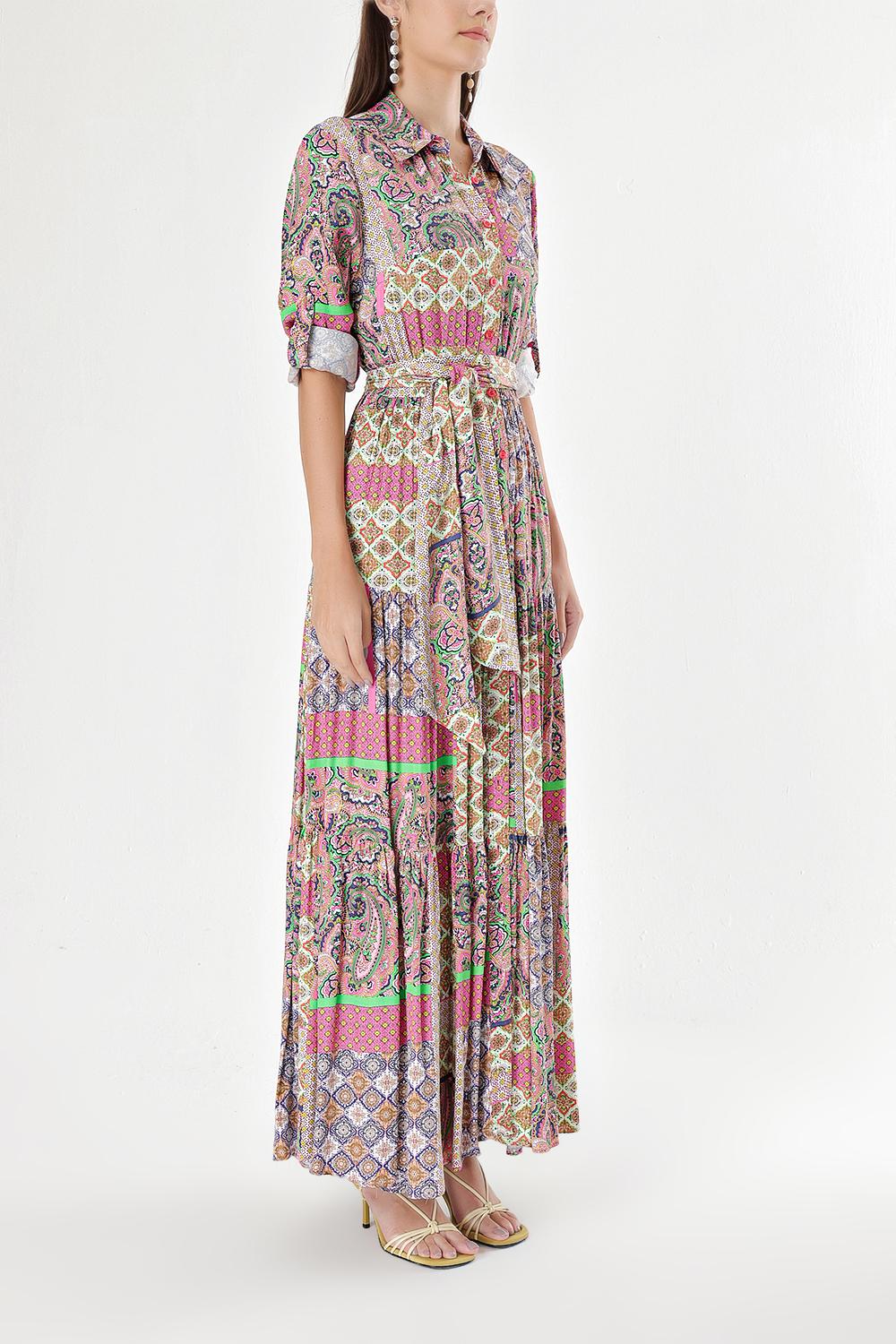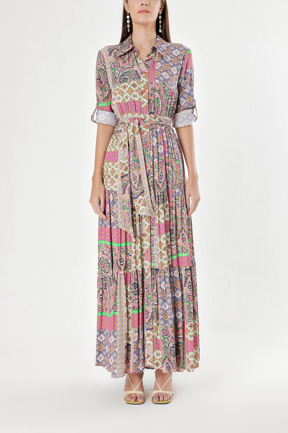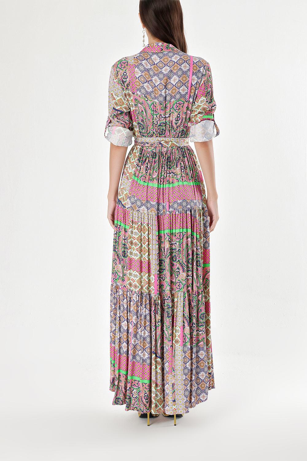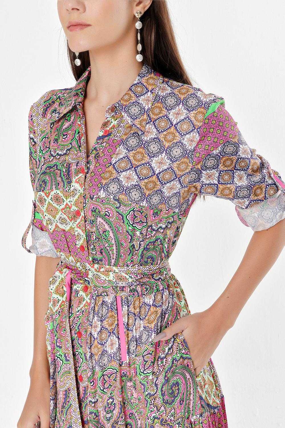 Desenli Büzgülü gömlek elbise 94241