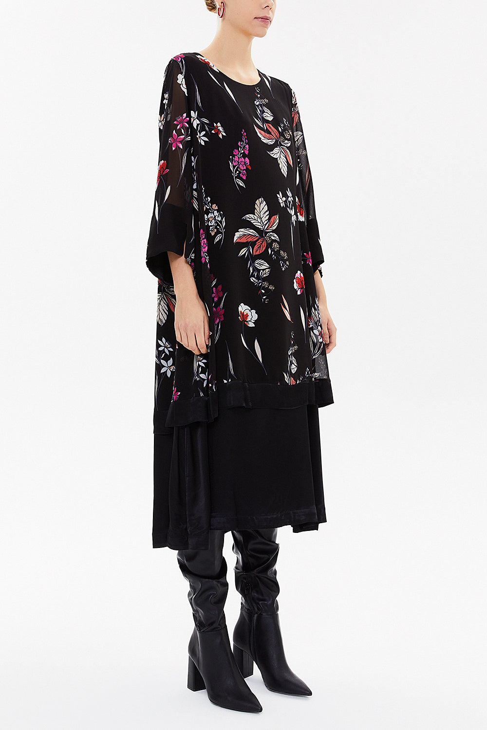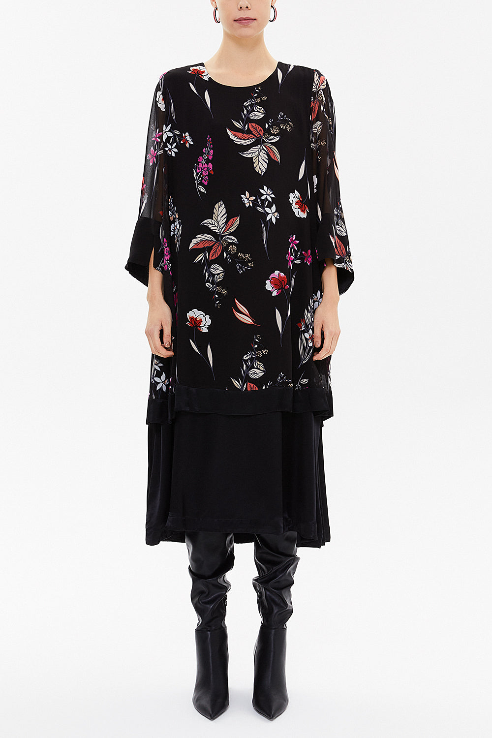 Desenli Desenli kumaş kombinli midi elbise 92537
