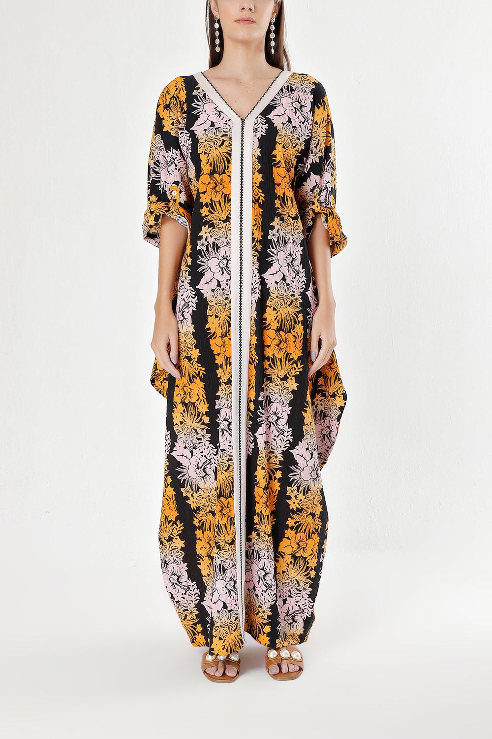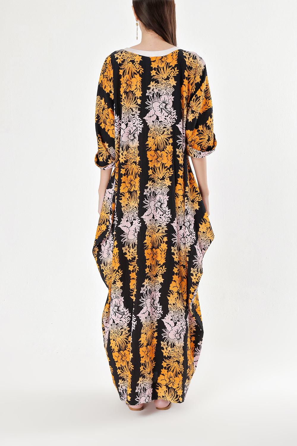 Desenli Dikiş detaylı bol kesim elbise 94304