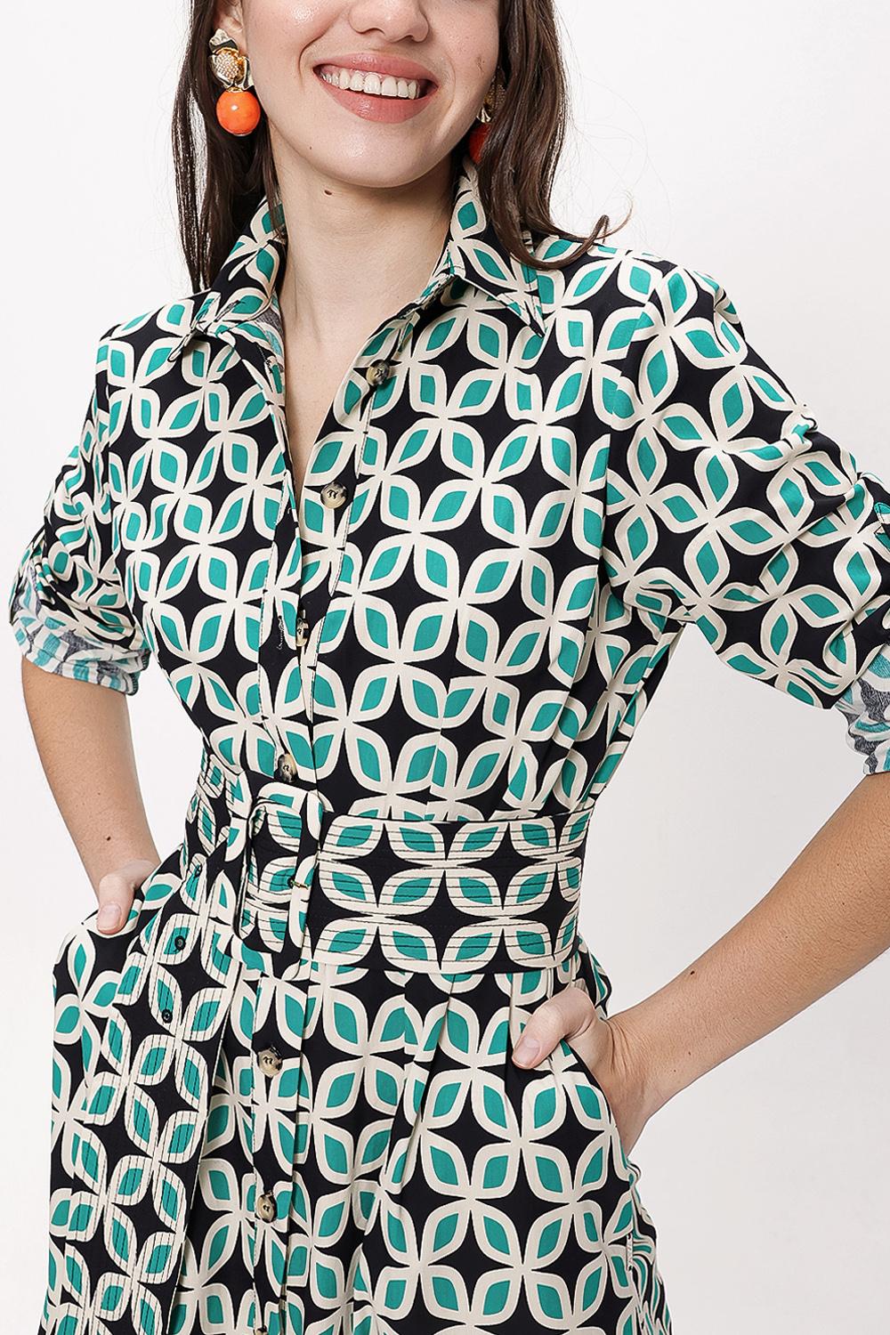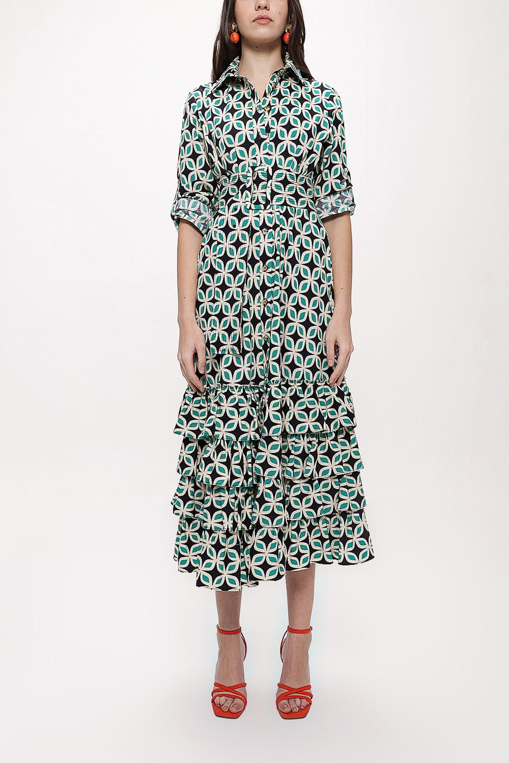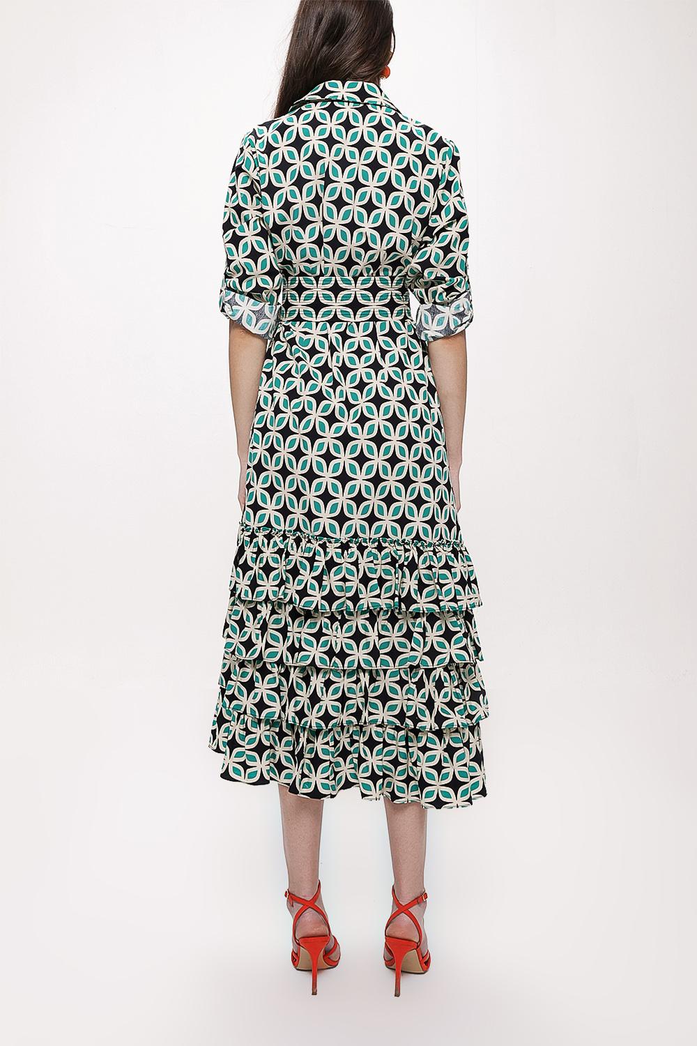 Desenli Fırfırlı uzun gömlek elbise 93979