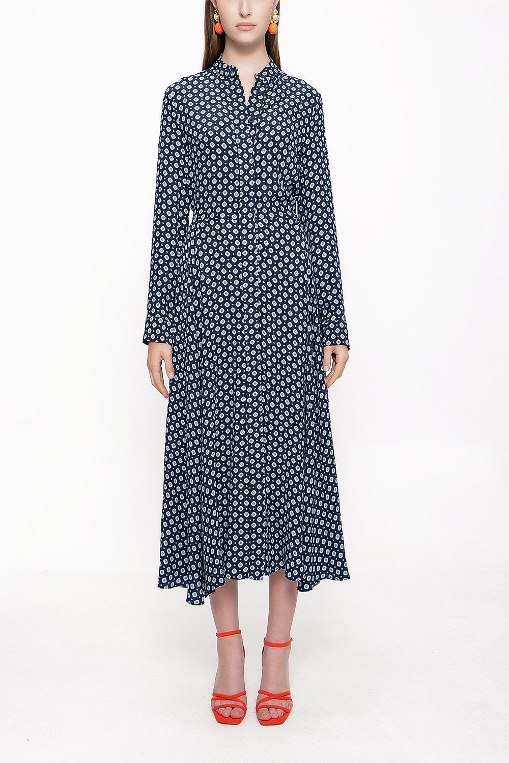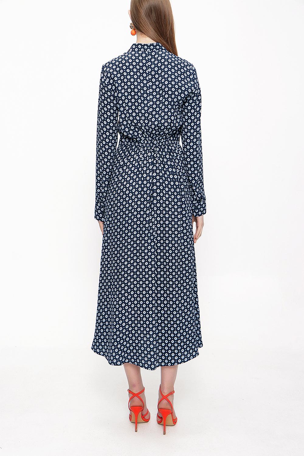 Desenli Hakim yaka beli lastikli gömlek elbise 94091
