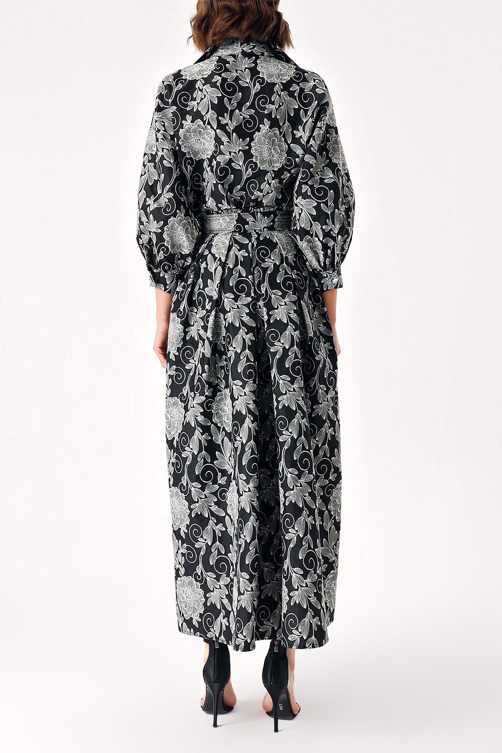 Desenli Kabarık etekli bağlama detaylı gömlek jakar takım 12328