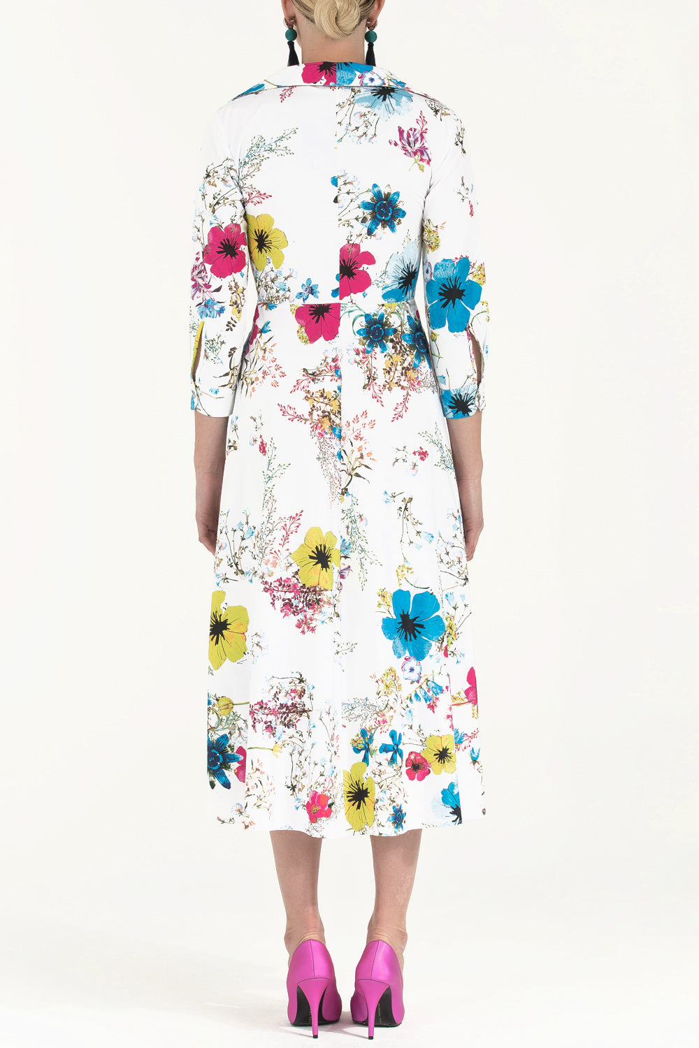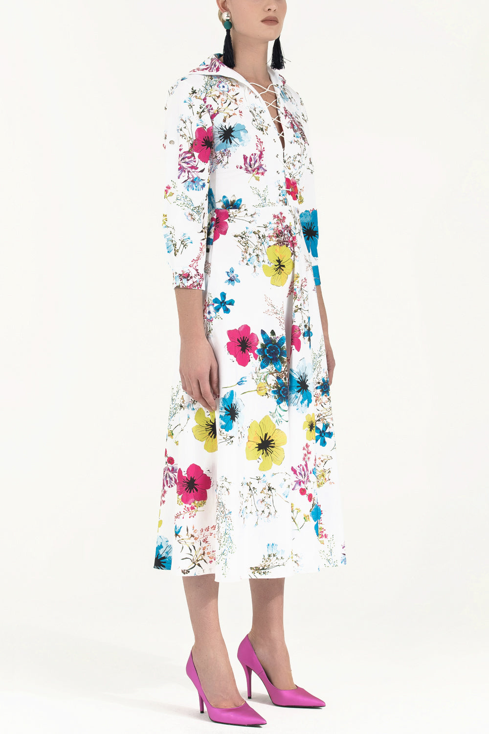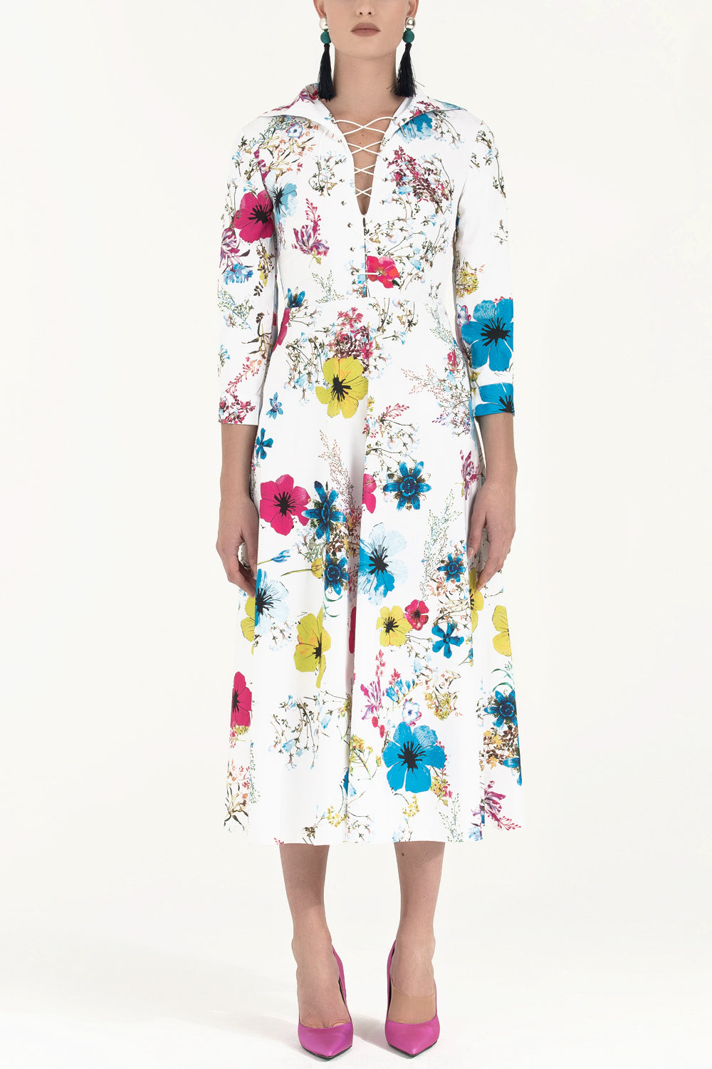 Desenli Kuş gözü ve bağcıklı midi elbise 91813