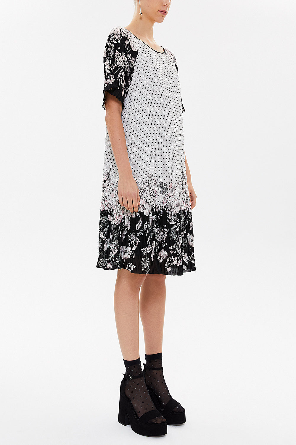 Desenli Piliseli mini elbise 92638