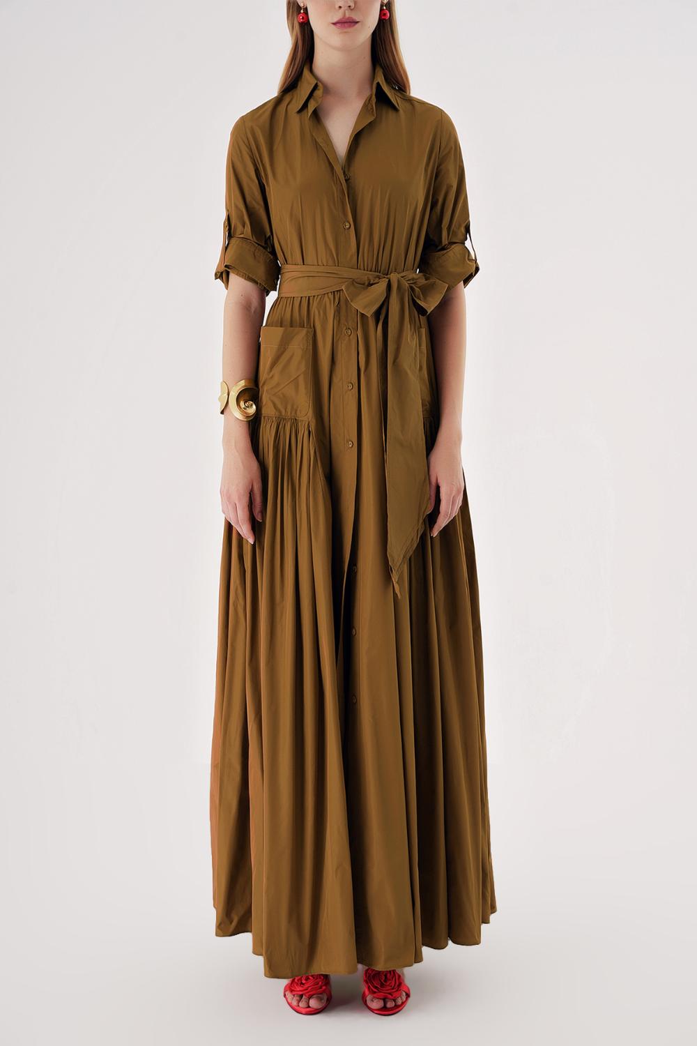 Devetüyü Büzgü detaylı uzun gömlek elbise 94577