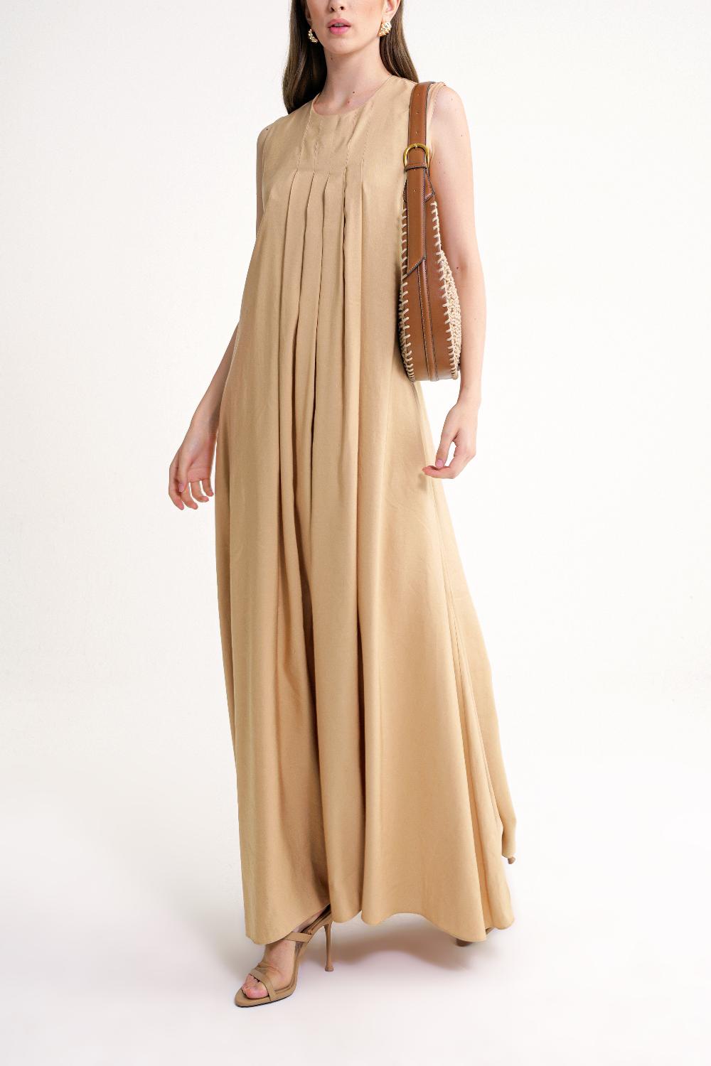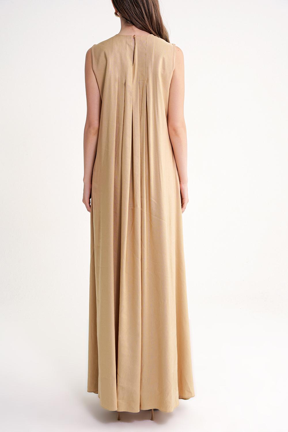 Devetüyü Pile detaylı bol kesim keten elbise 94653