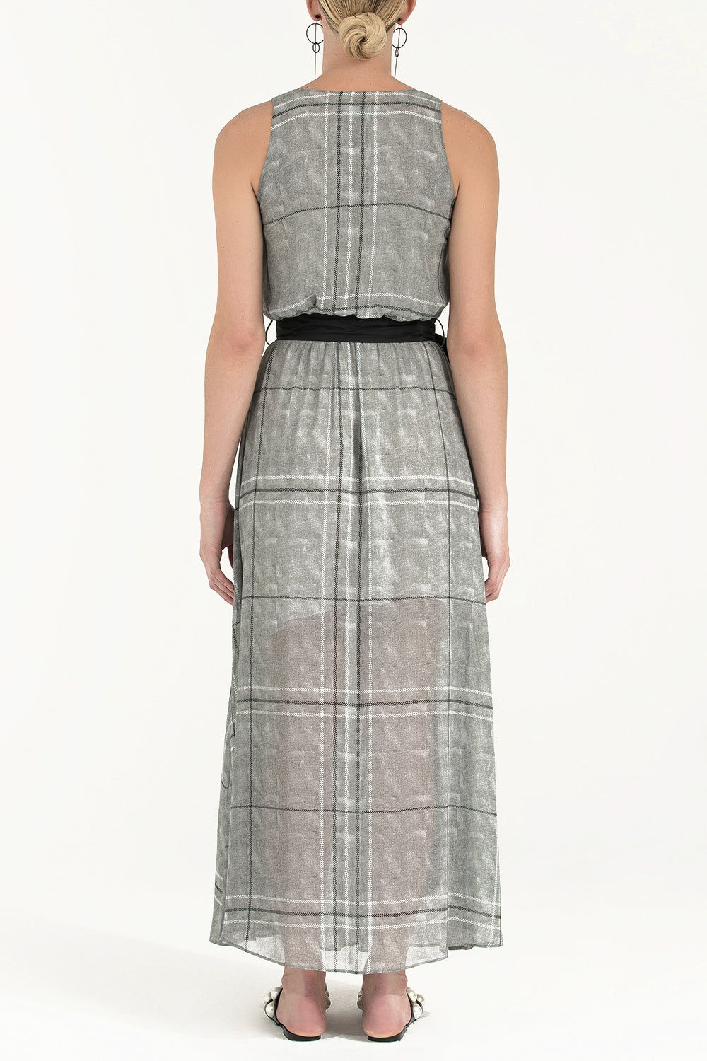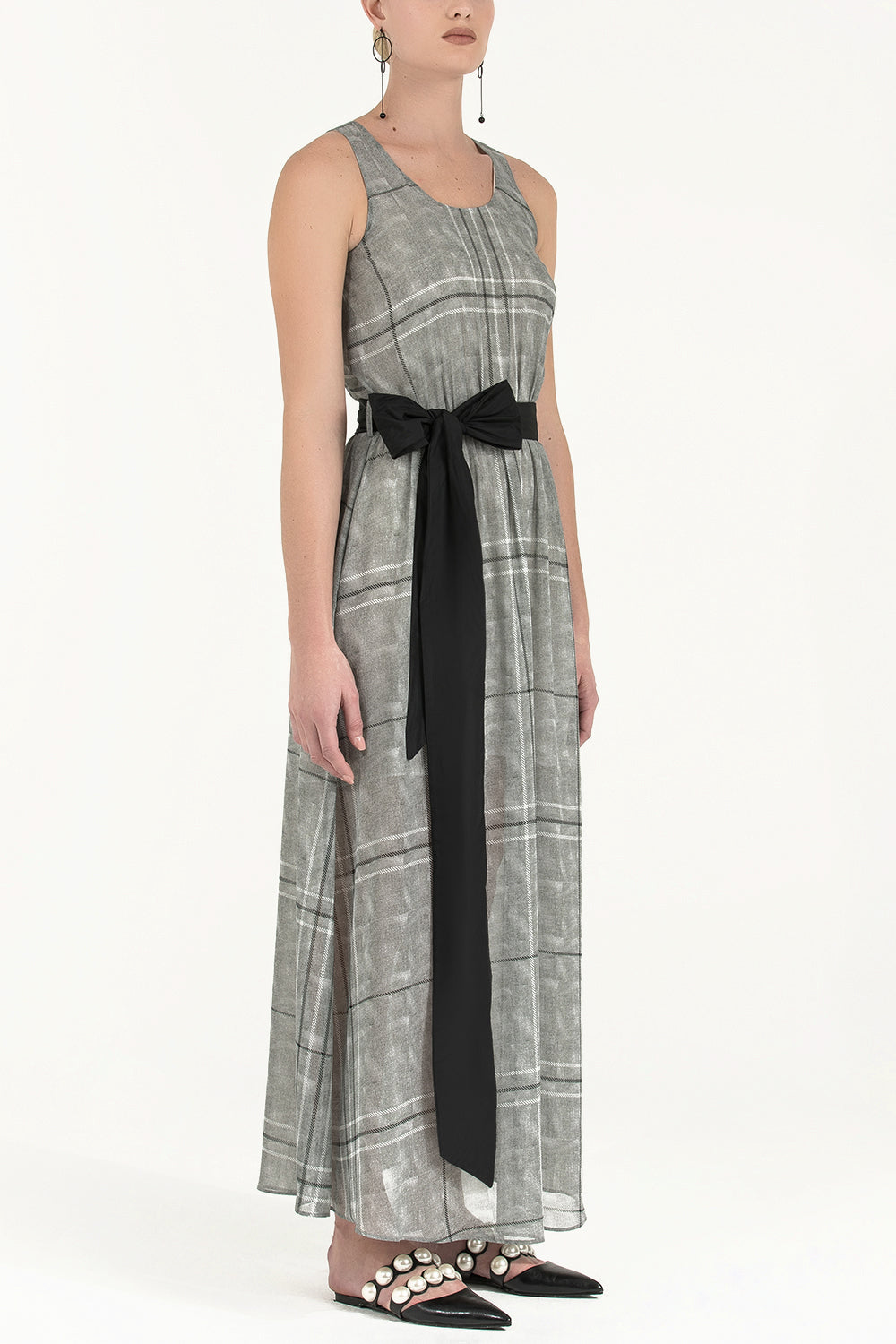 Ekose Kemerli desenli uzun elbise 92316