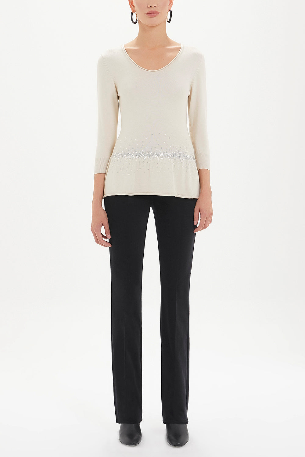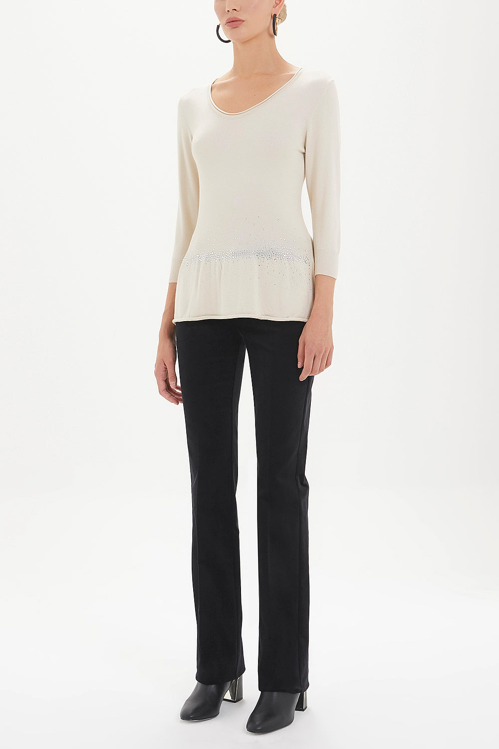 Ekru Beli taşlı triko bluz 28487