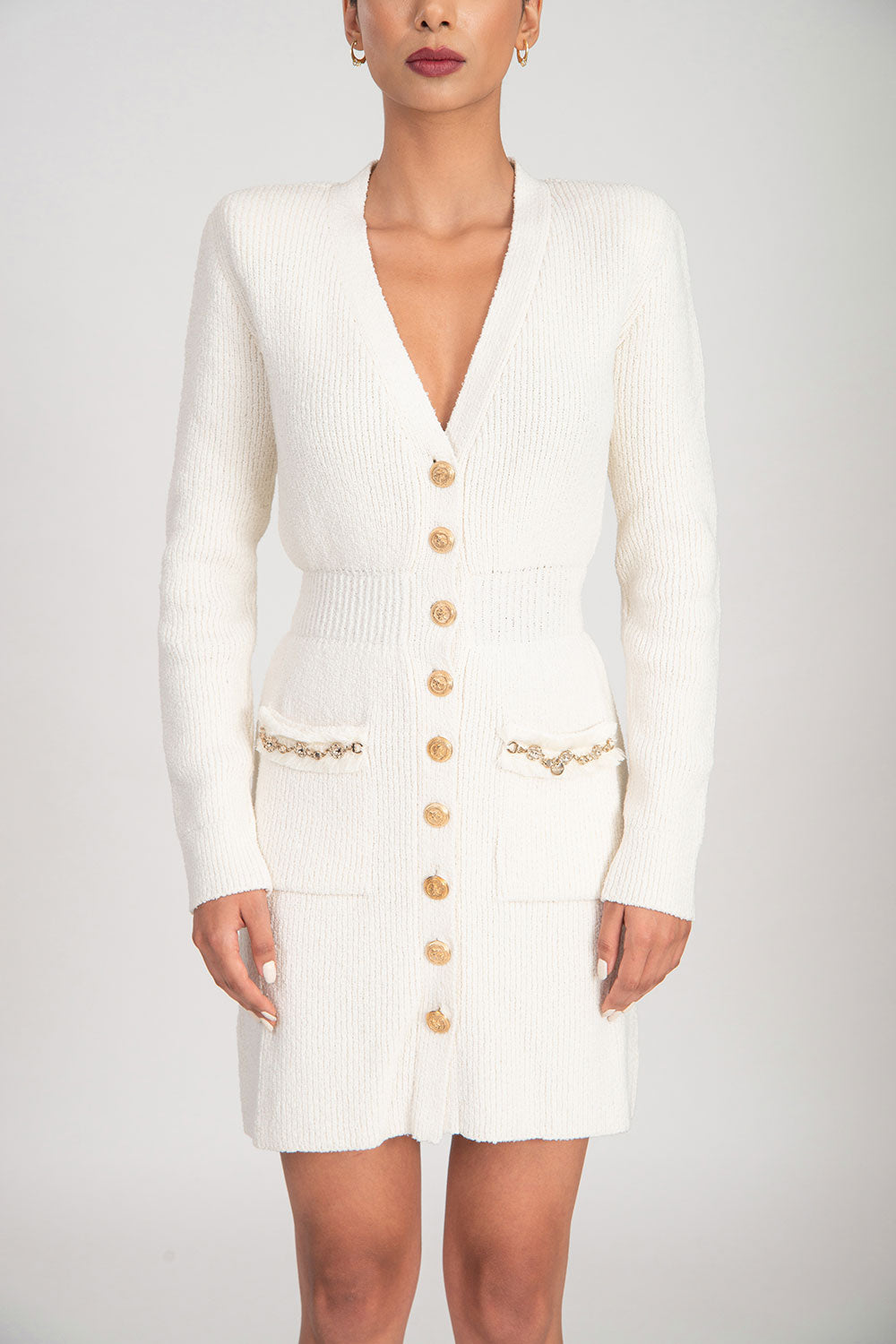 Ekru Cepleri aksesuar detaylı triko hırka 28838