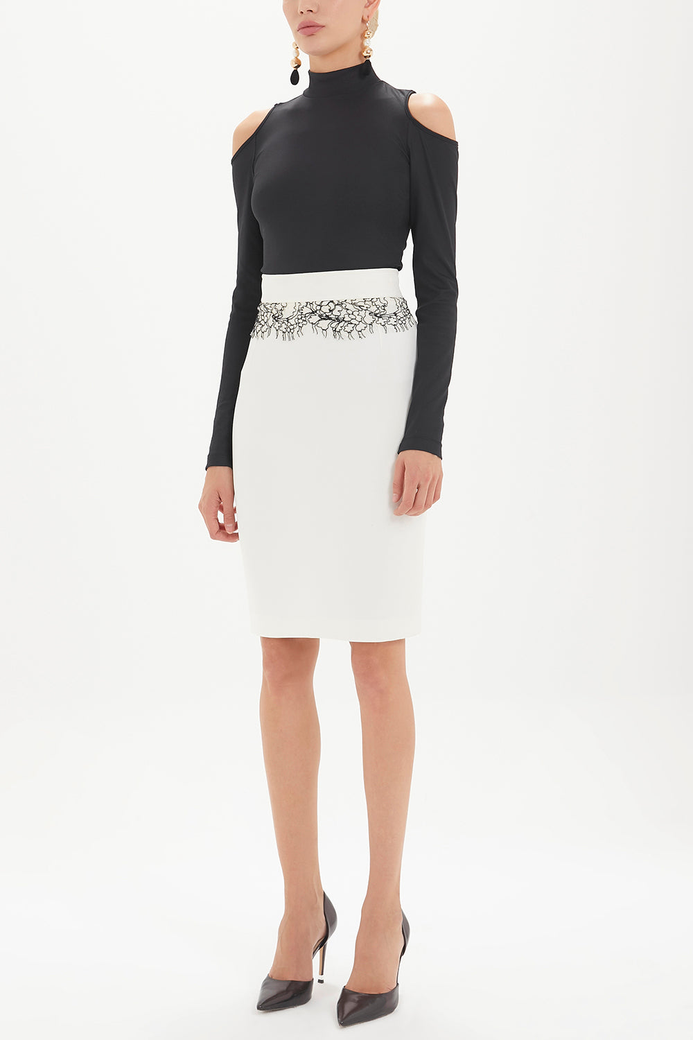 Ekru Dantelli dar kesim etek 80613