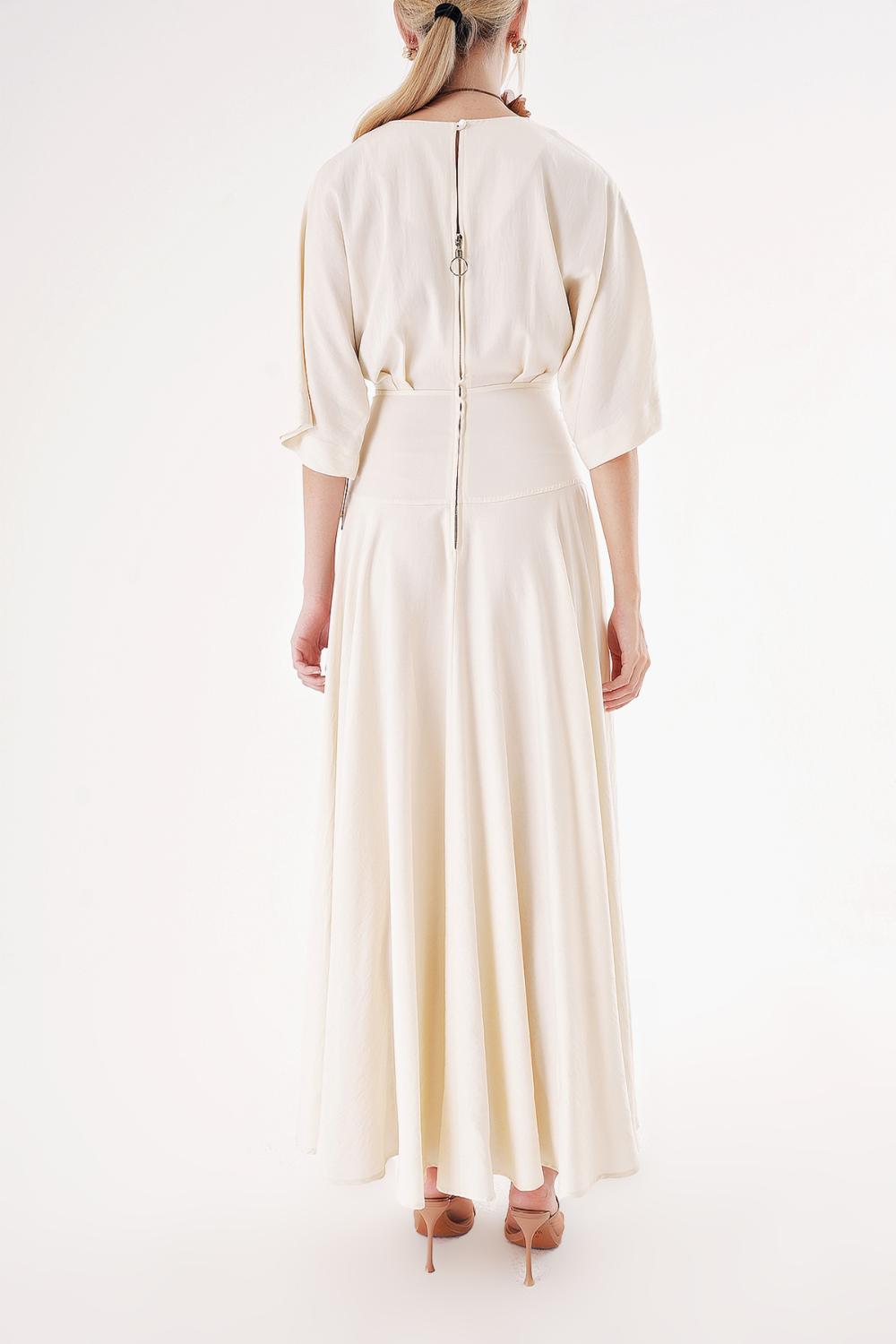 Ekru Geniş kollu, kurdela detaylı volanlı elbise 94434