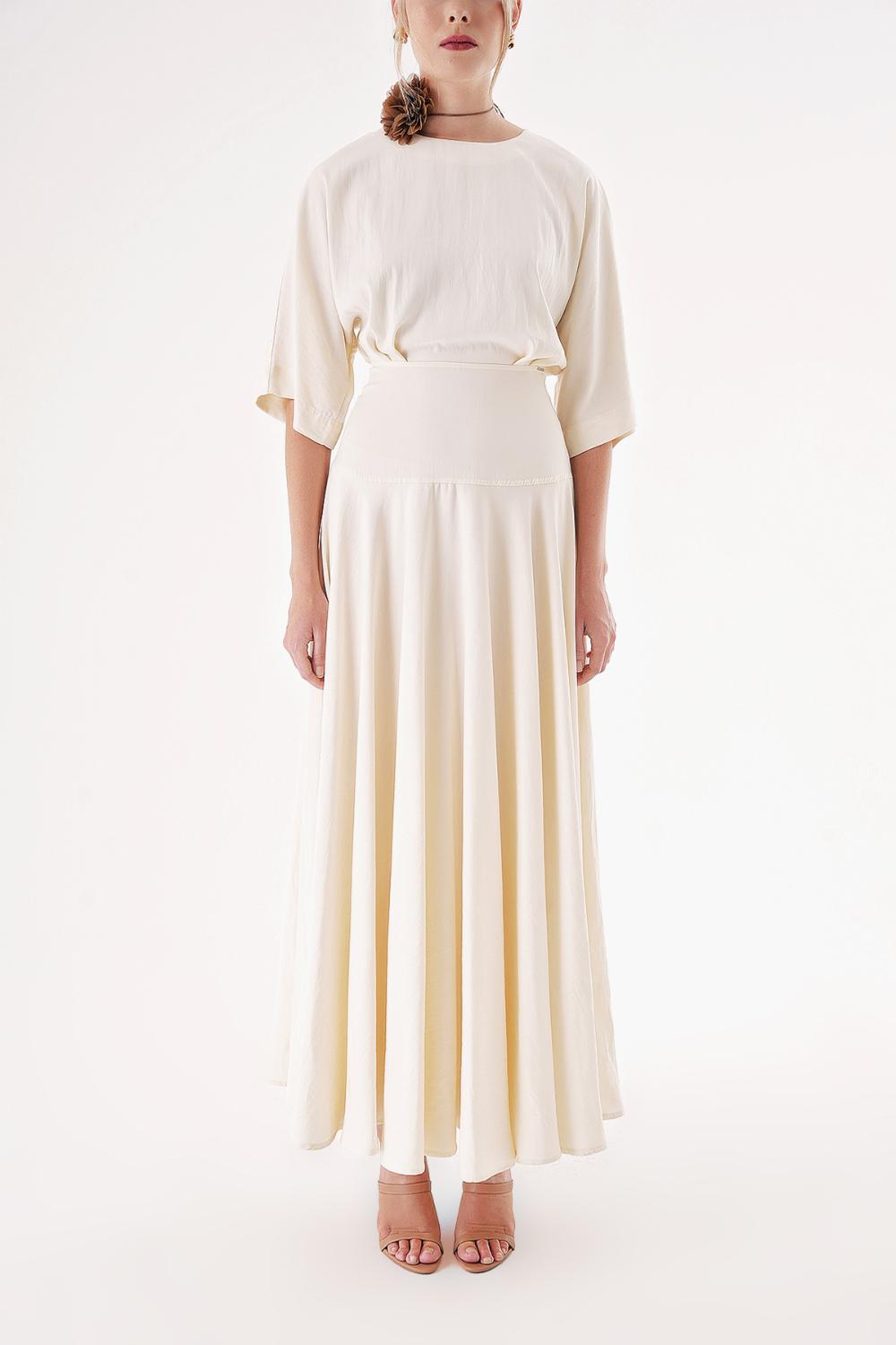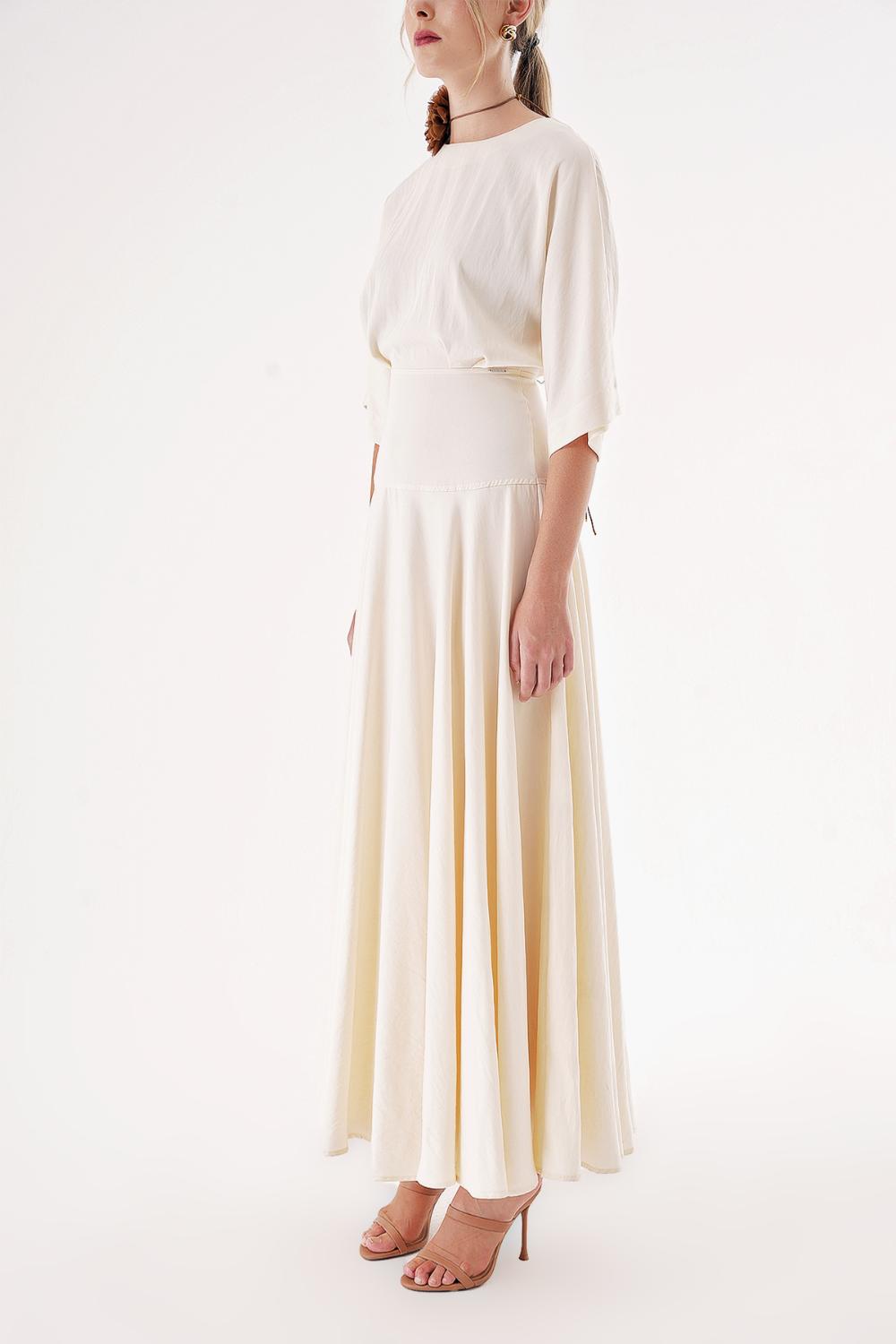 Ekru Geniş kollu, kurdela detaylı volanlı elbise 94434