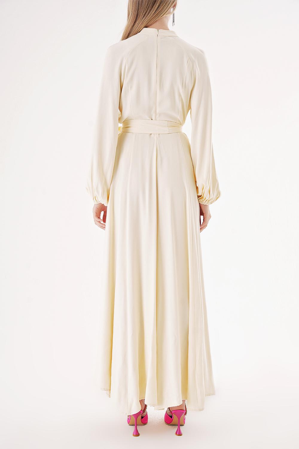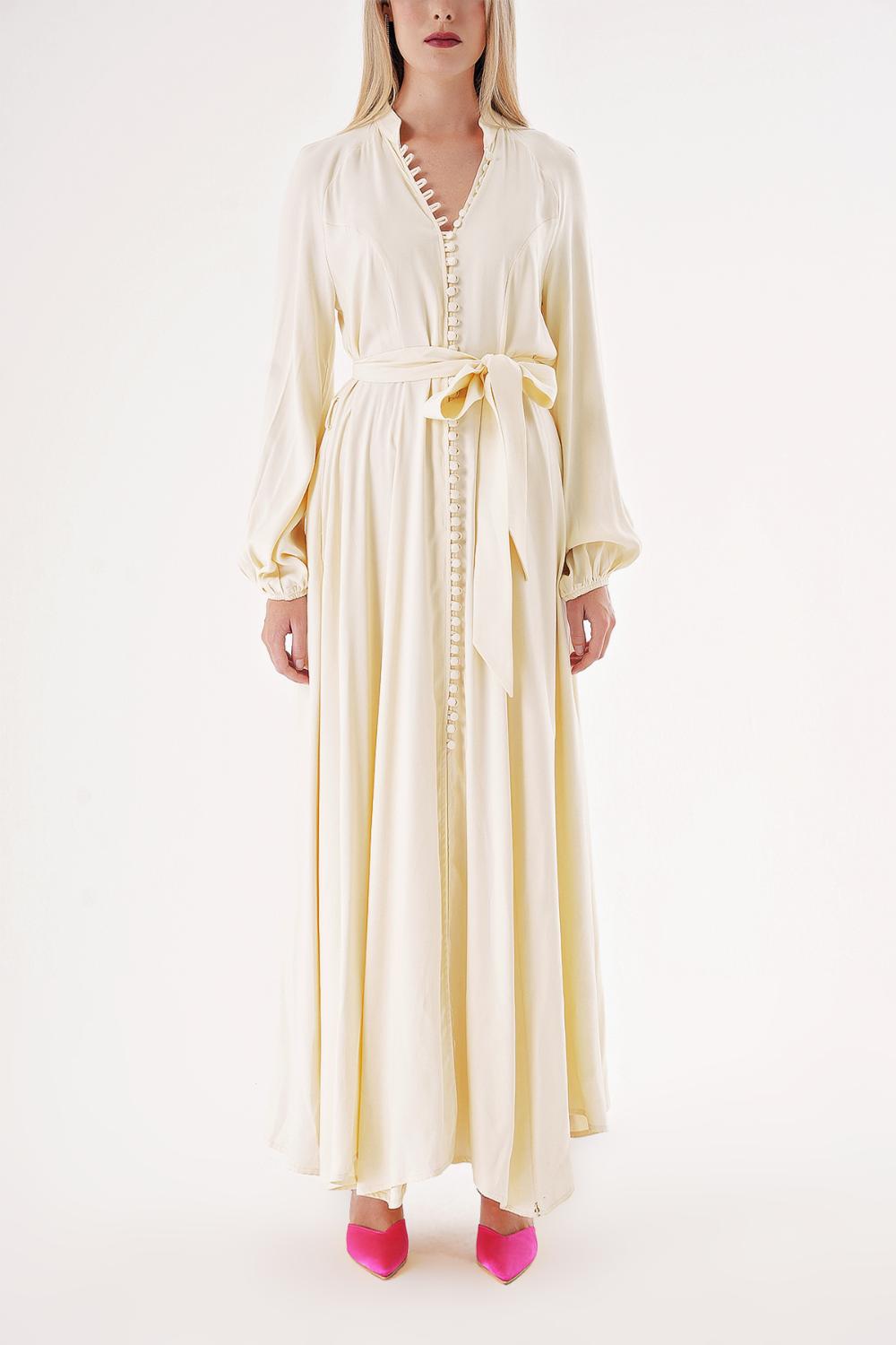 Ekru Hakim yaka balon kollu düğmeli elbise 94469
