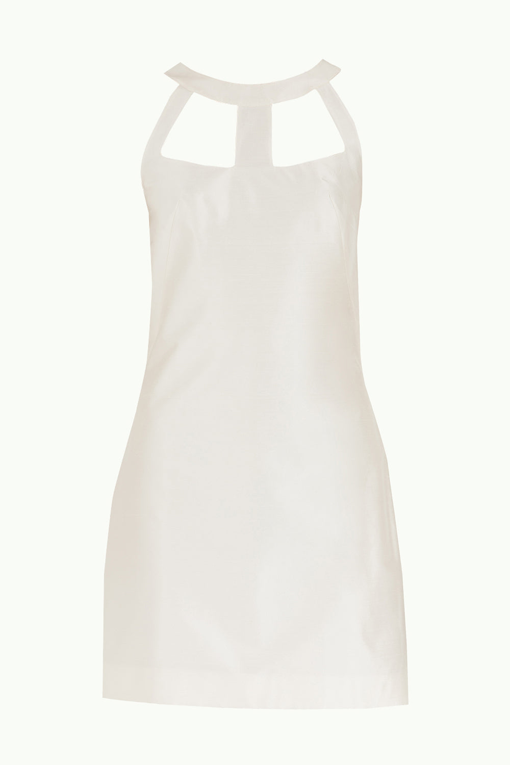 Ekru Kolsuz ipek şantuk mini elbise 91833