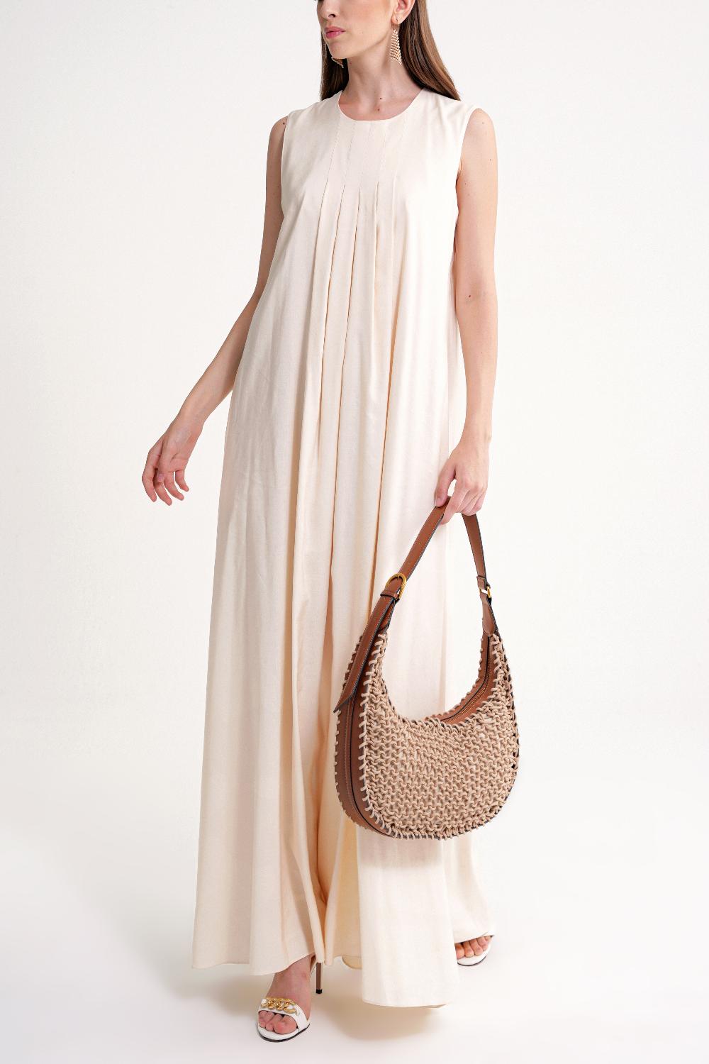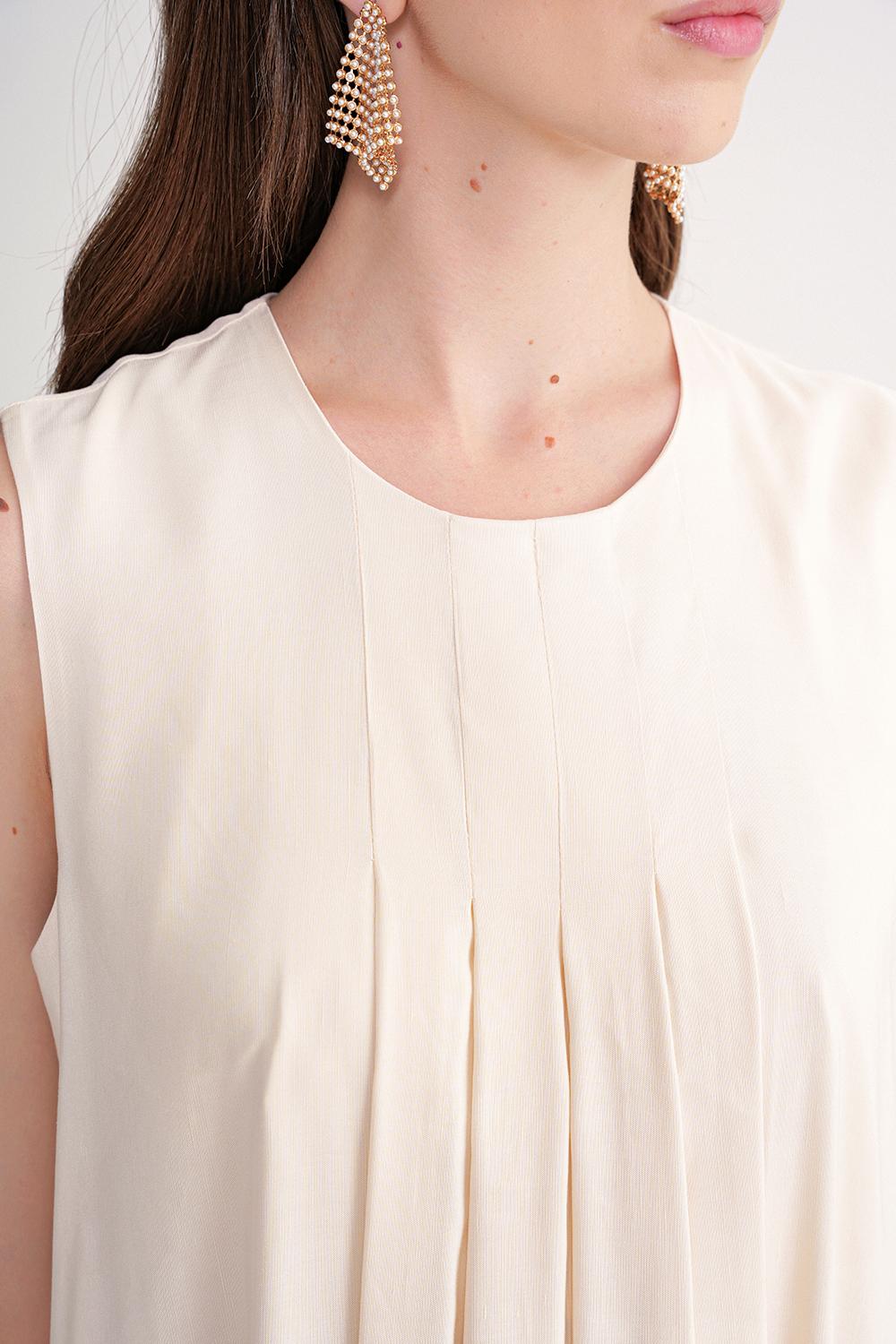 Ürün Özellikleri: Ön ve arka pli detaylı tasarımı ile dökümlü formu zarif bir silüet yaratır. Keten kumaşı ve bol kesimiyle gün boyu rahatlık sağlar.