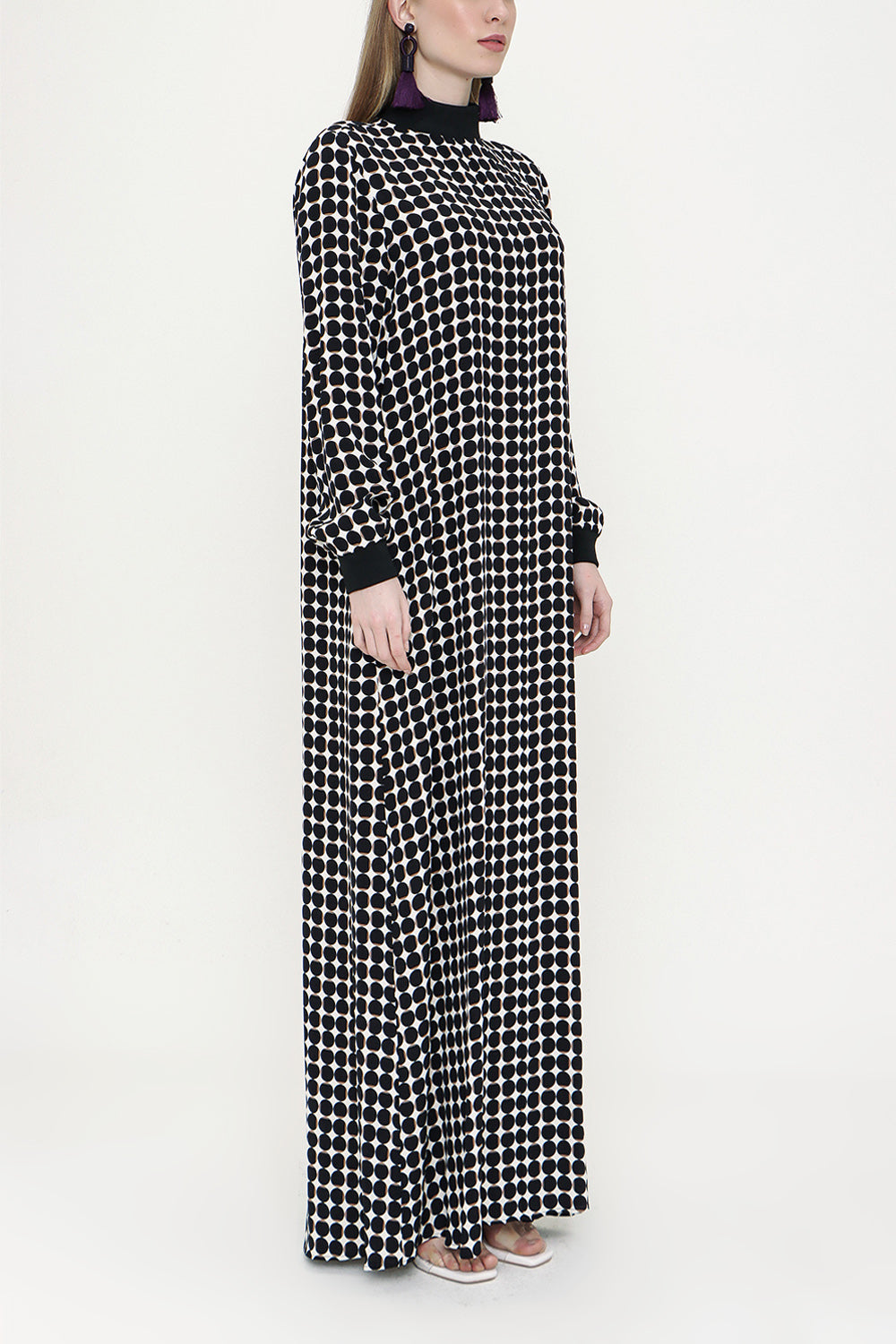Ekru Siyah Ribanalı bol kesim elbise 93715