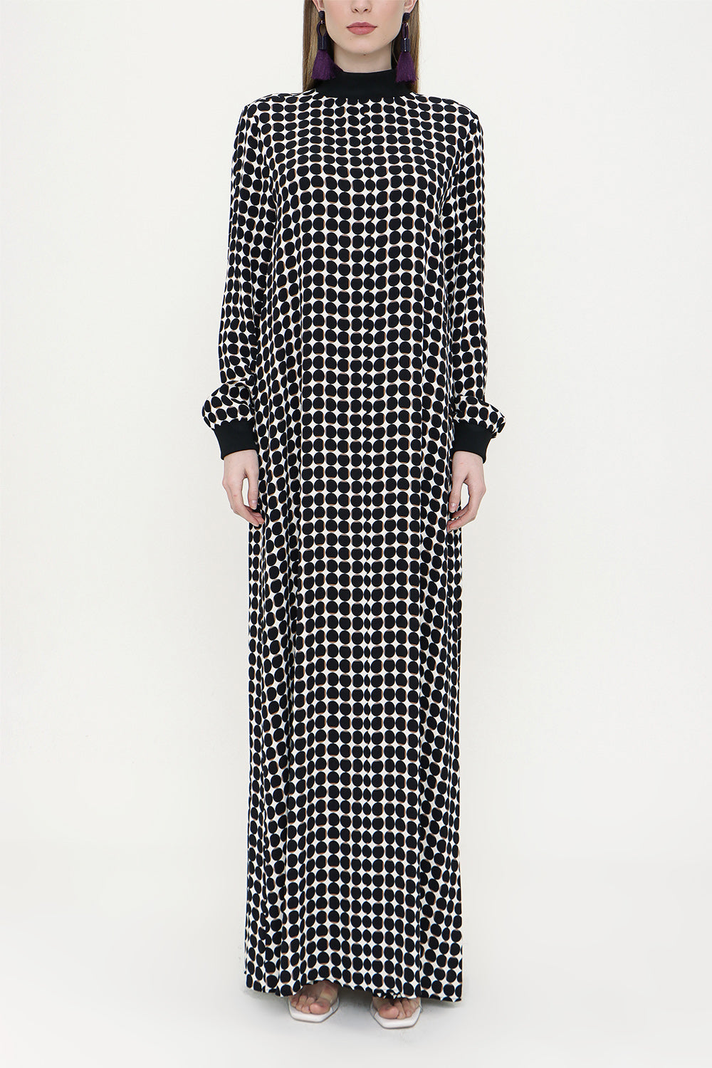 Ekru Siyah Ribanalı bol kesim elbise 93715