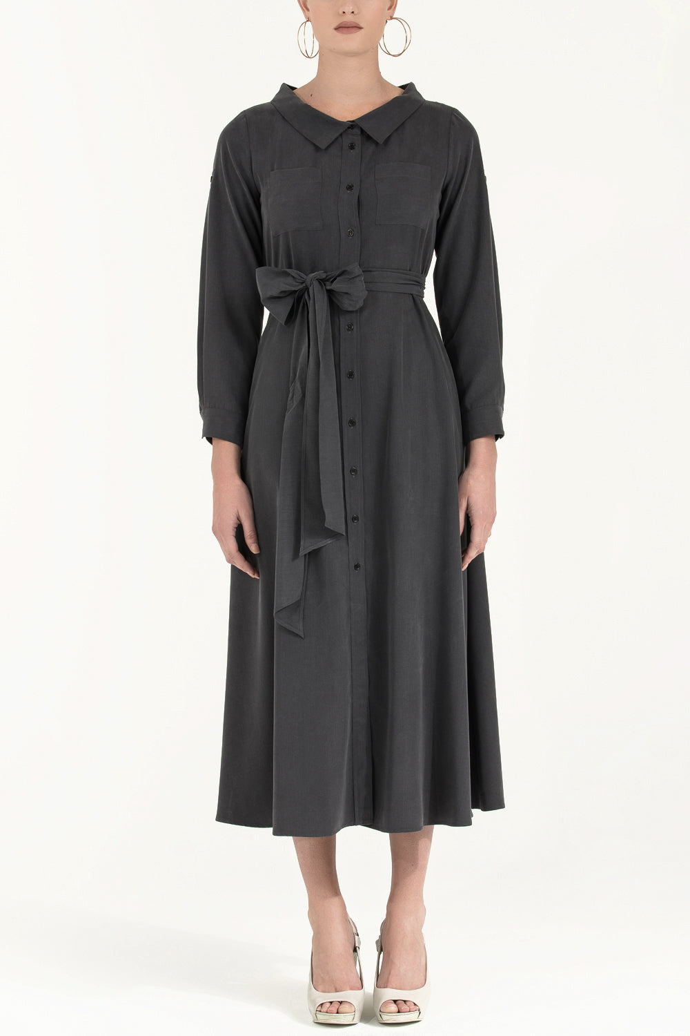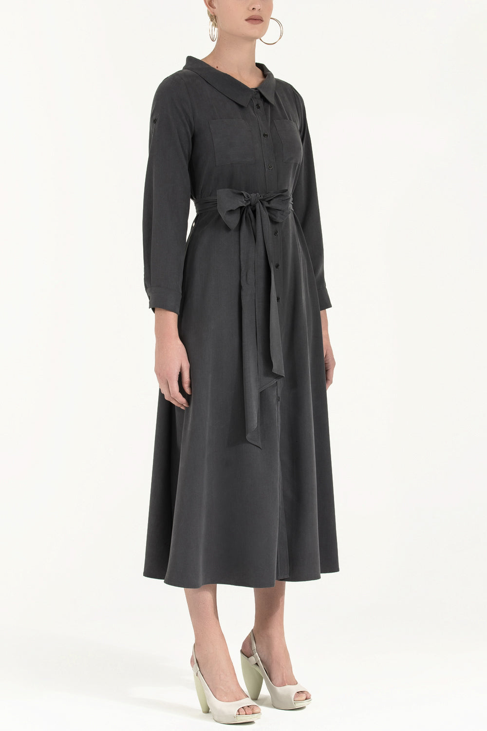 Füme Kemerli midi elbise 92302