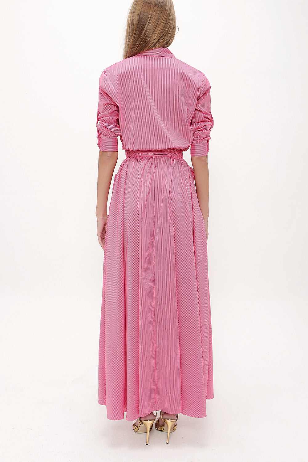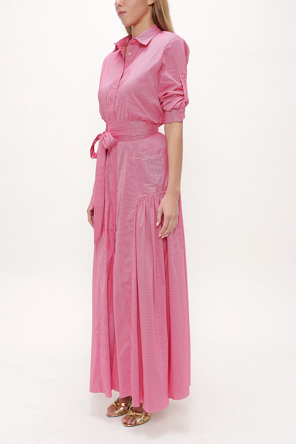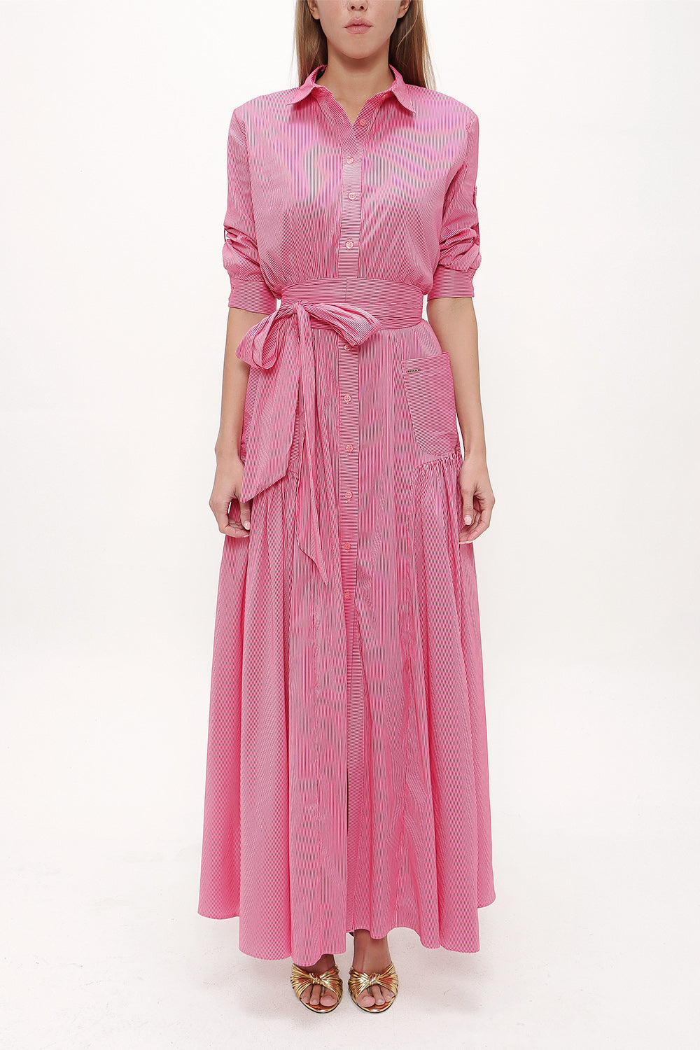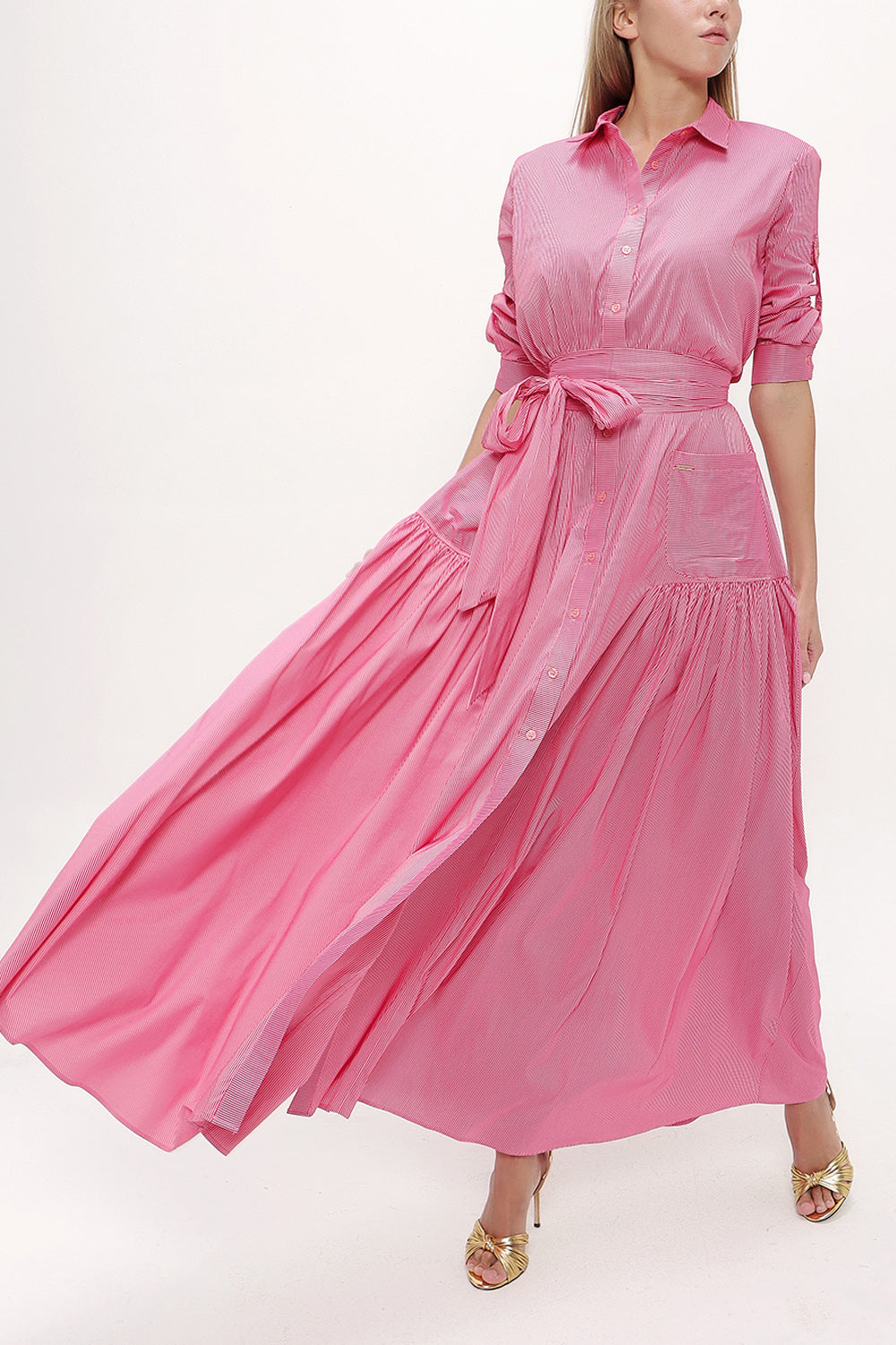 Fuşya Cepli lastikli uzun elbise 92606