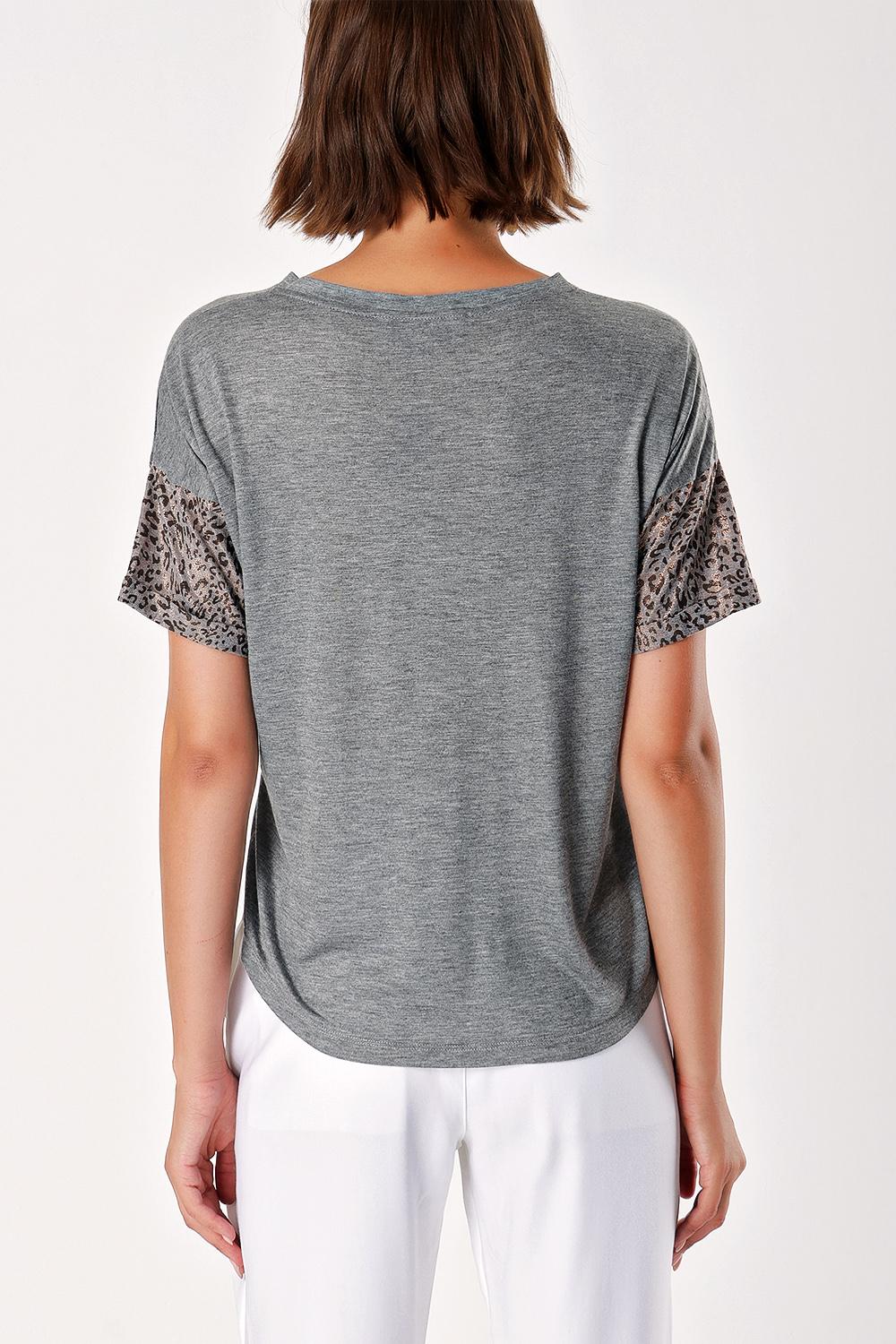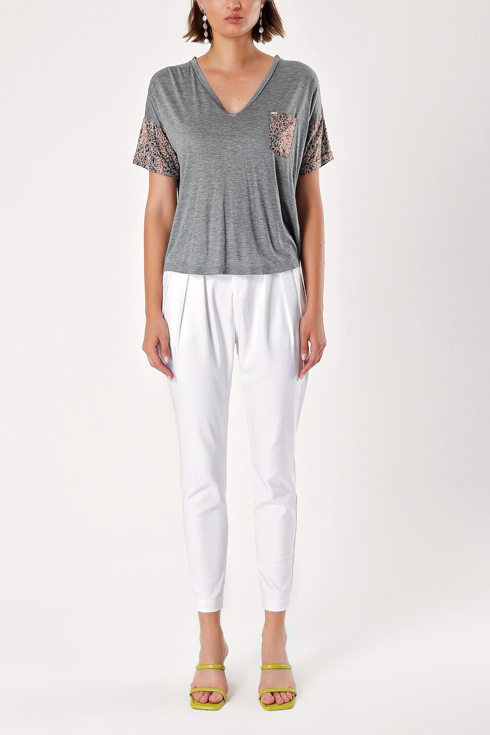 Gri DESENLI V YAKA ORME BLUZ 19584
