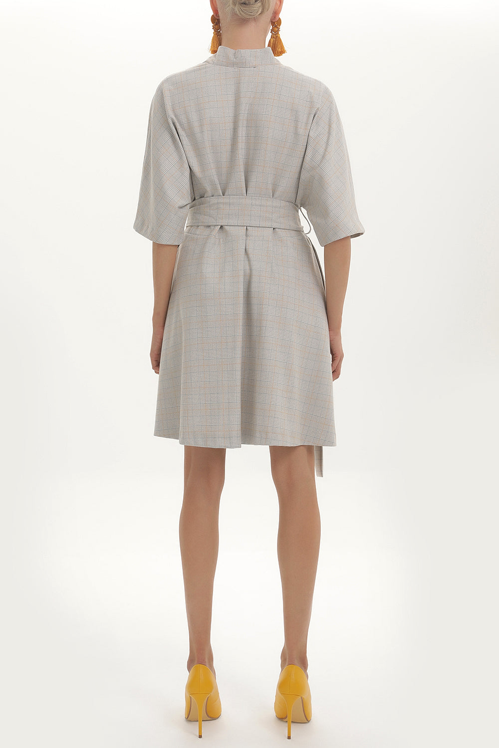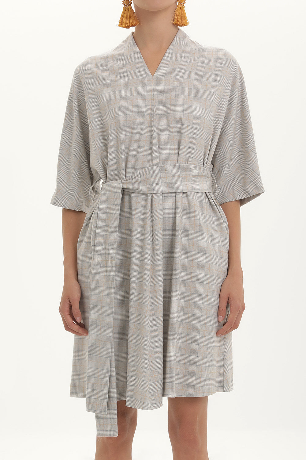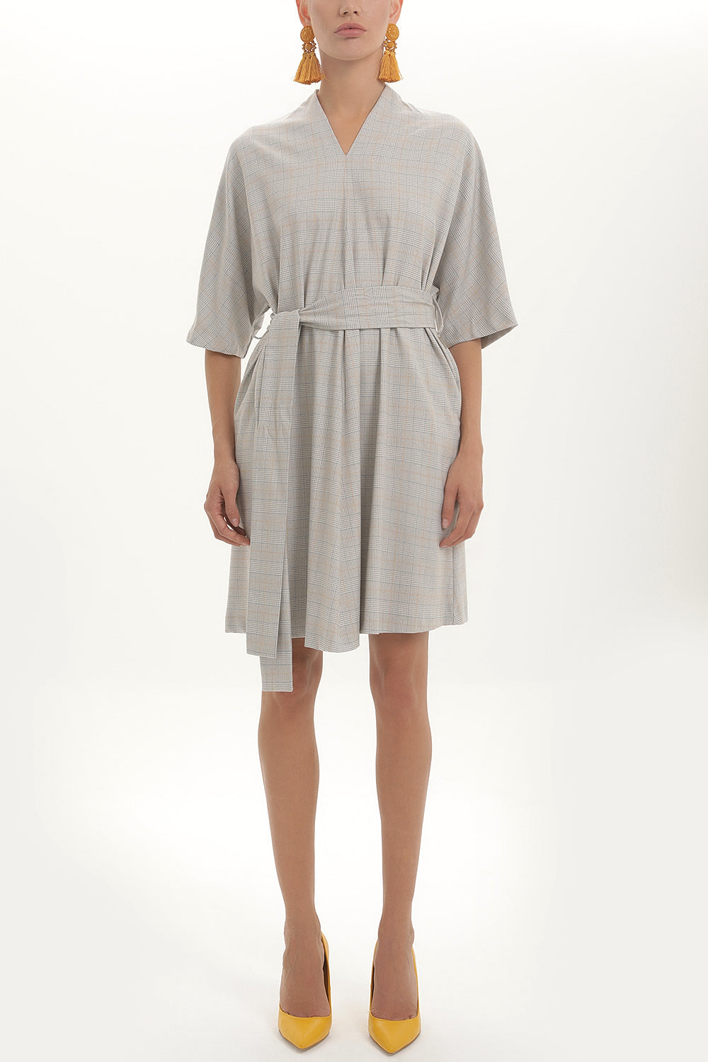 Gri Kemerli V yaka bol kesim mini elbise 92408