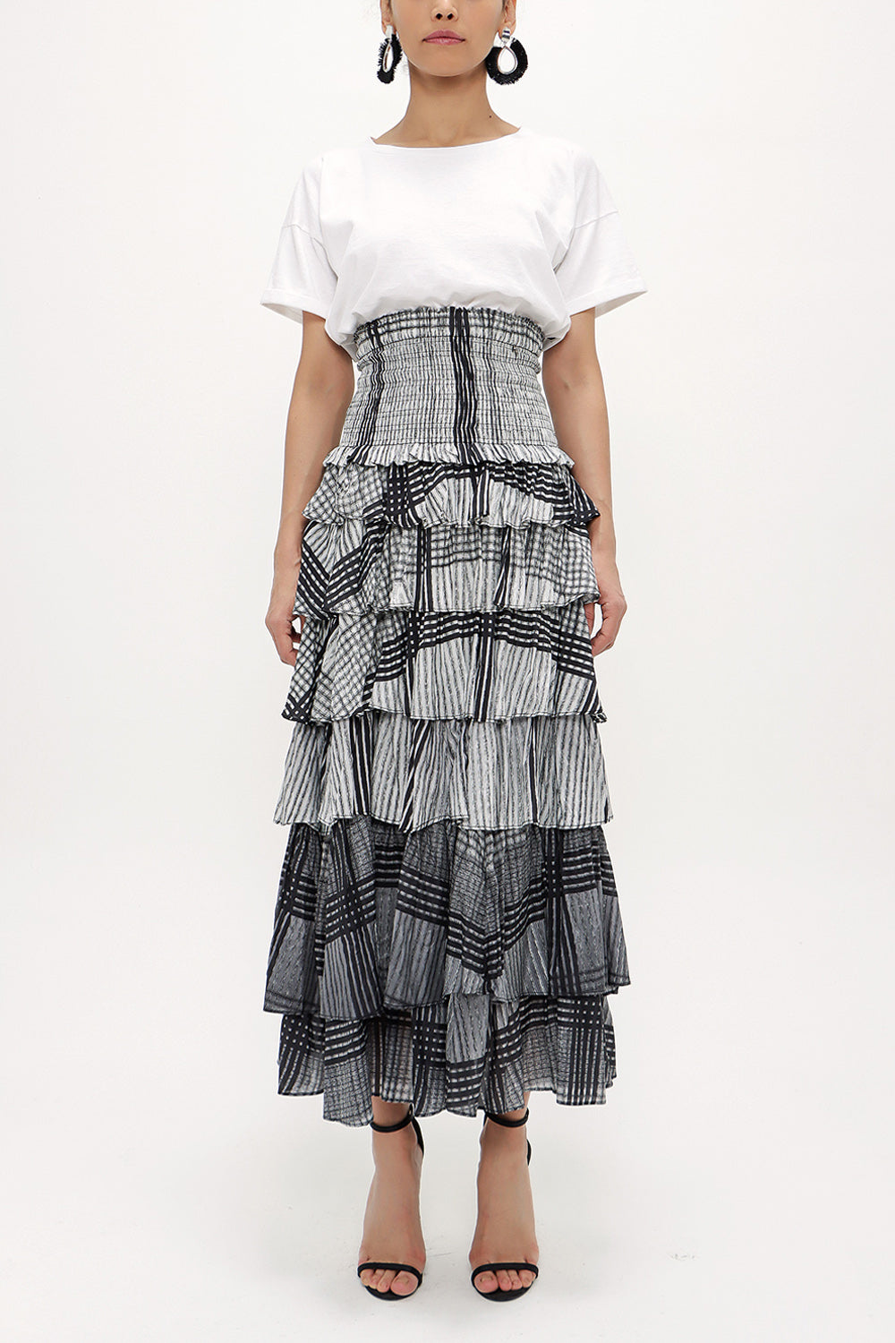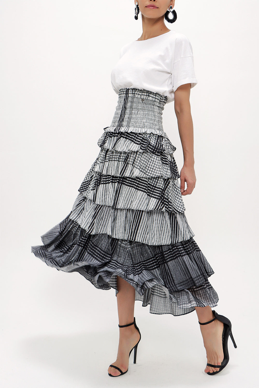 Gri Siyah Çizgili Fırfırlı uzun etek 81157