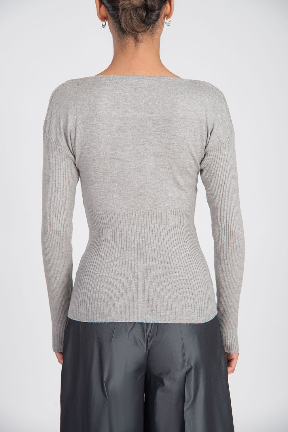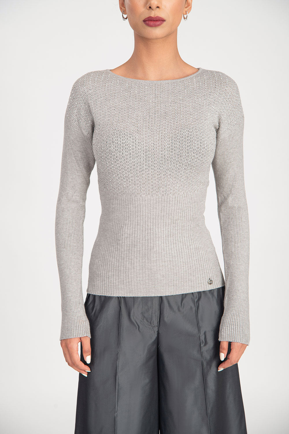 Gri Yapıştırma taş detaylı triko bluz 28887