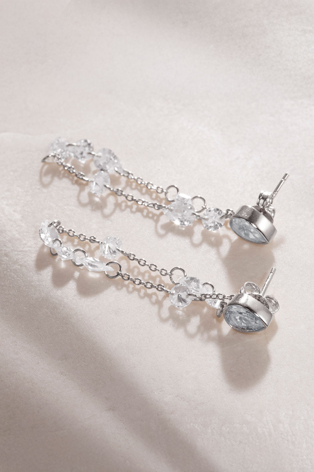 Gümüş Damla ve kristal taş detaylı 925 ayar gümüş küpe 59