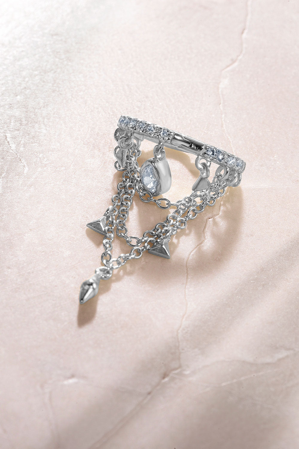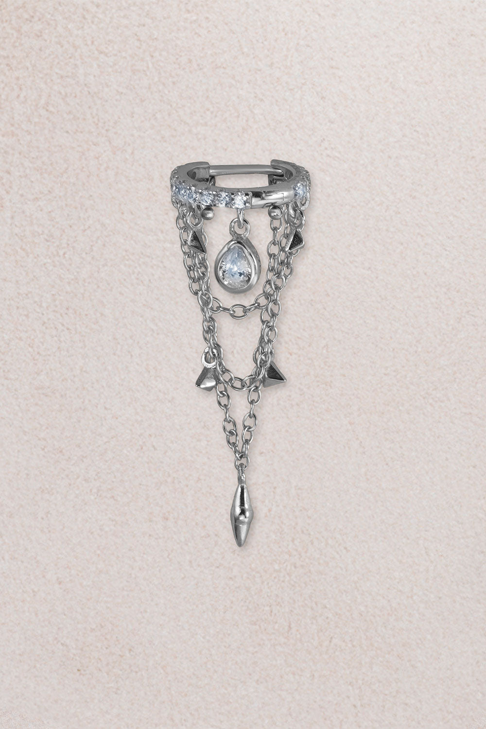 Gümüş Damla ve kristal taşlı zincir detaylı 925 ayar gümüş kıkırdak küpe 61