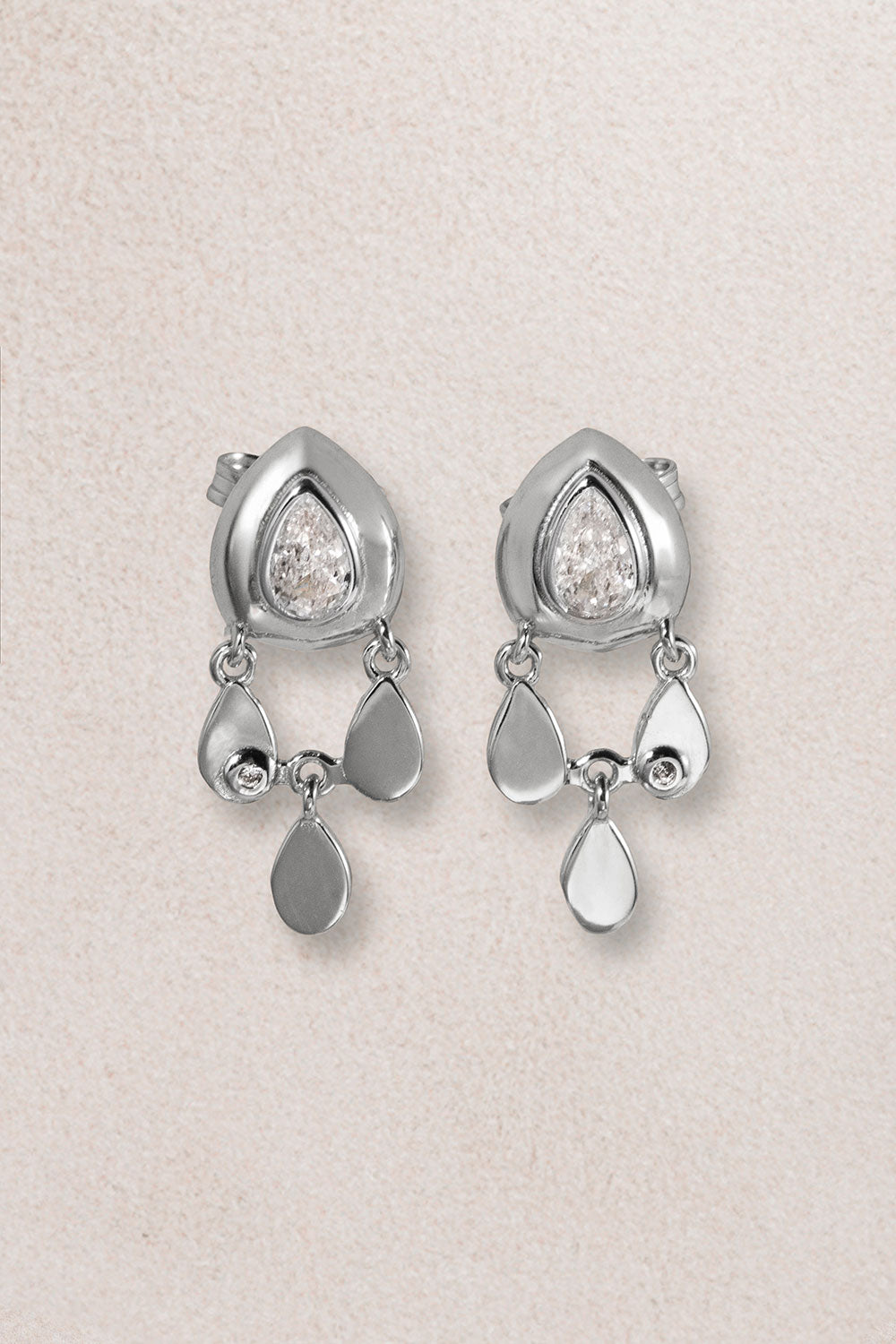 Gümüş Damla ve taş detaylı 925 ayar gümüş küpe 02