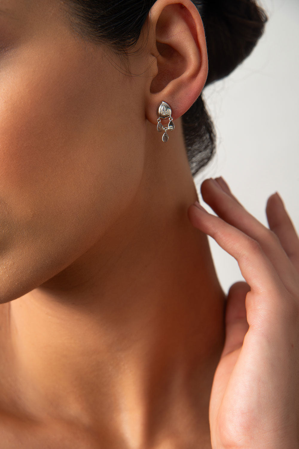 Ürün Özellikleri: İnce işçilik ve damla taş detayıyla tasarlanmıştır. Parlak taşlar, küpenin her bir detayıyla uyumlu şekilde ışıltı sağlar. Zarif ve modern bir aksesur olup günlük hayatta rahatça kullanabilirsiniz.