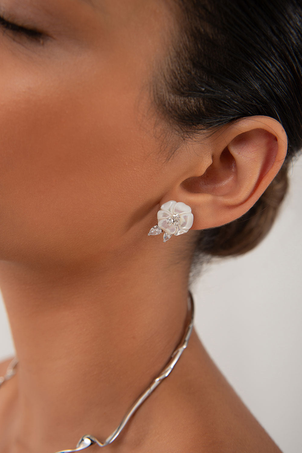 Gümüş Gül ve taş detaylı 925 ayar gümüş küpe 96