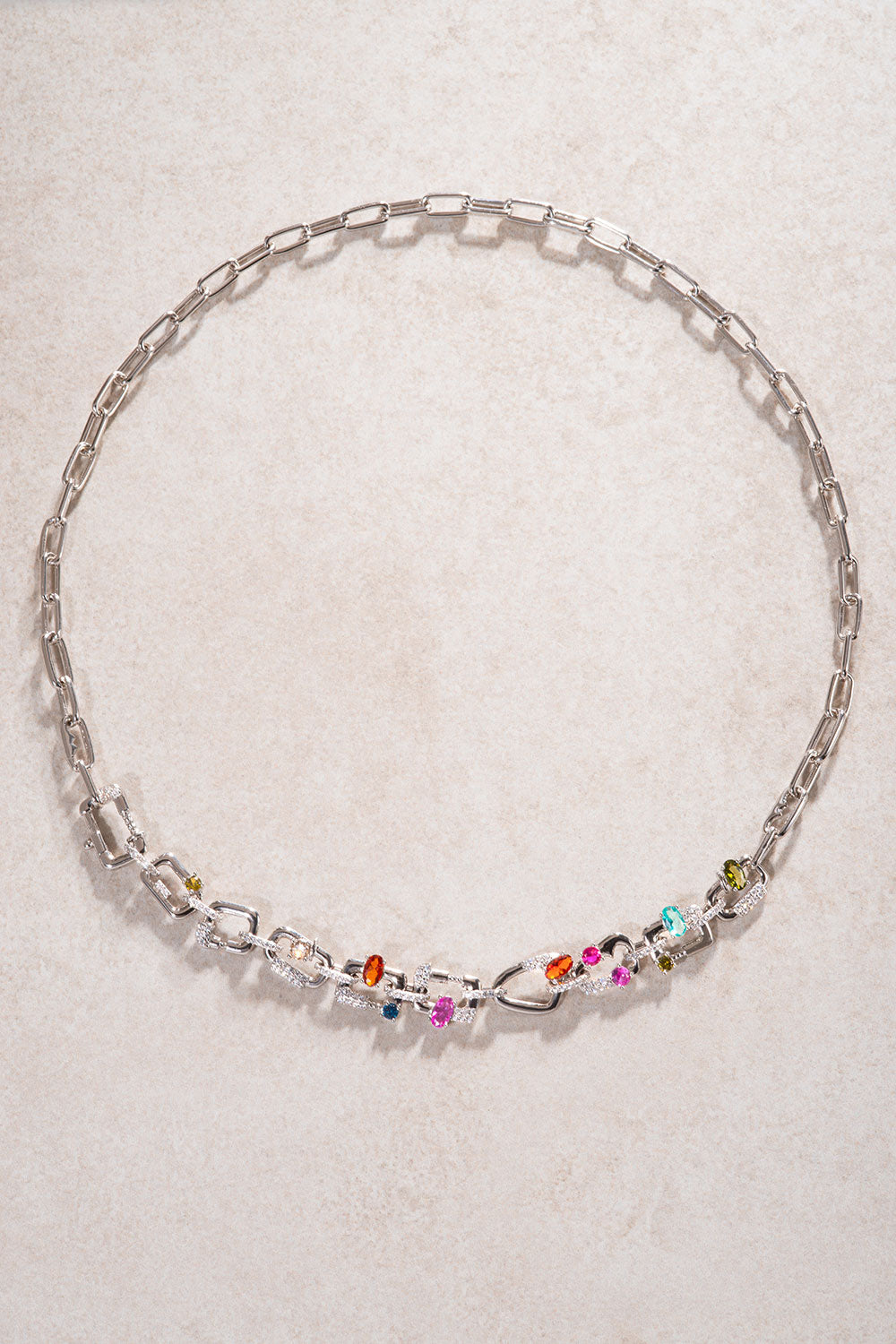 Gümüş Halka ve renkli taş detaylı 925 ayar gümüş kolye 08