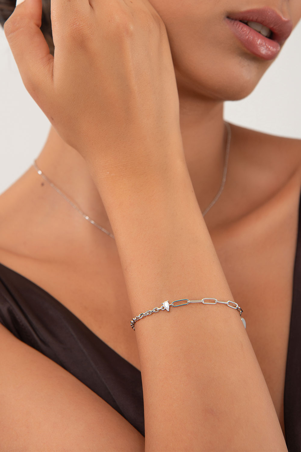 Ürün Özellikleri: Kristal taş ve iki zincirin birleşiminden oluşan bu bileklik, hem sade hem de dikkat çekici bir tasarım sunar. Modern bir şıklık yakalar; günlük kullanım için ideal, zamansız bir aksesuardır.