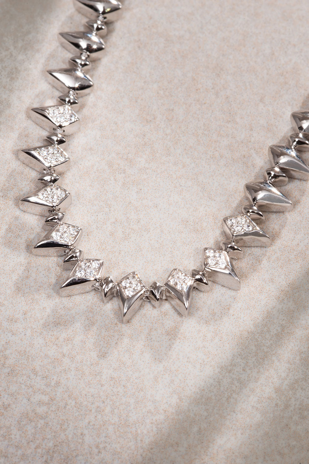 Ürün Özellikleri: Zarif ve modern tasarımıyla bu gümüş kolye, ışıltılı taşlarla süslenmiştir. Keskin uçlar ve dikkat çekici detaylarıyla her tarzda şıklığınızı ön plana çıkarır. Günlük rahatça kullanabilirsiniz.