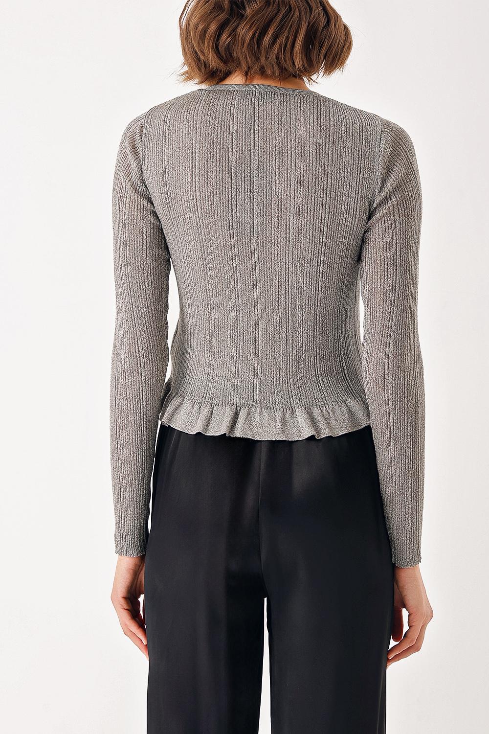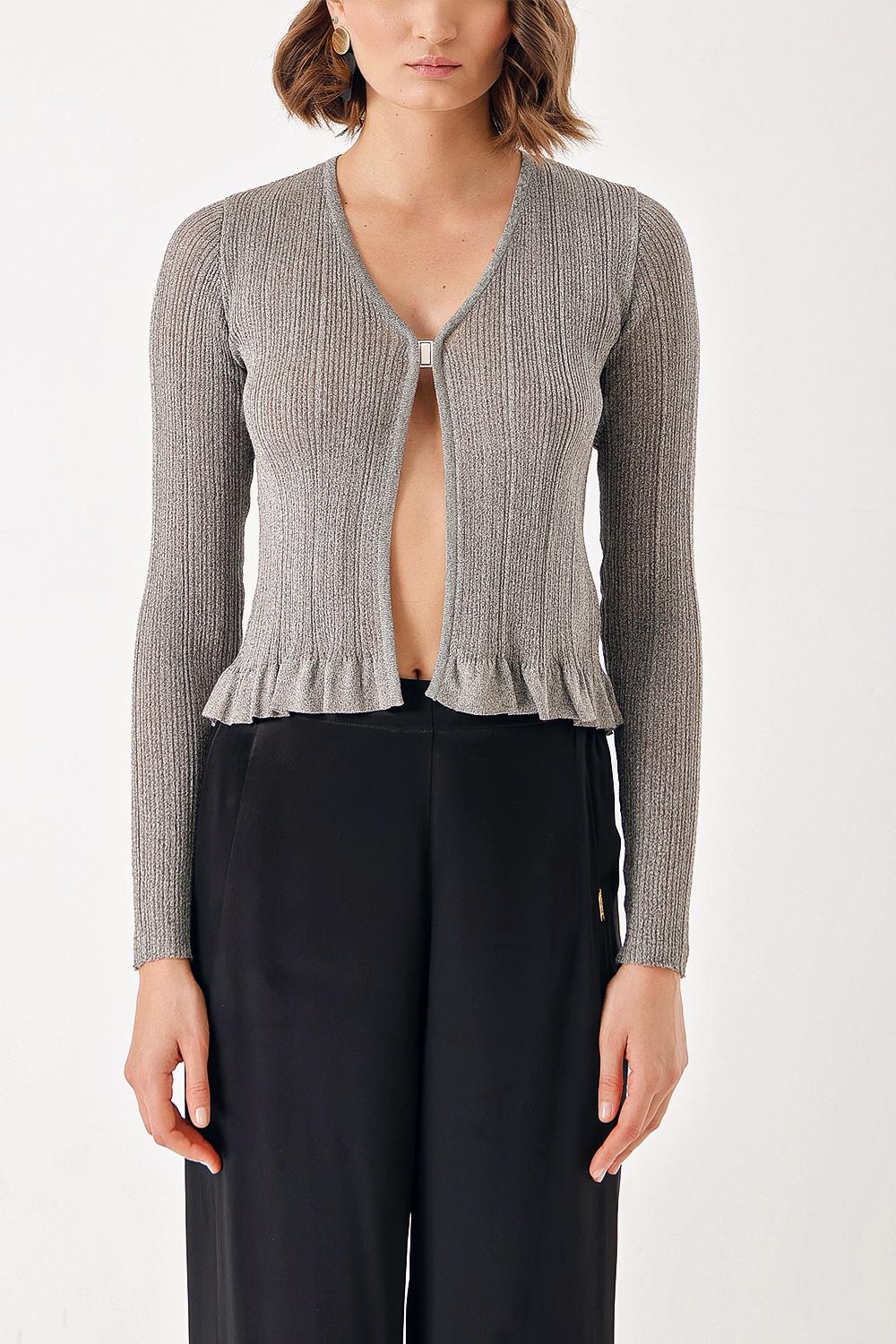 Gümüş Kısa ince parlak ipli örme hırka 28877