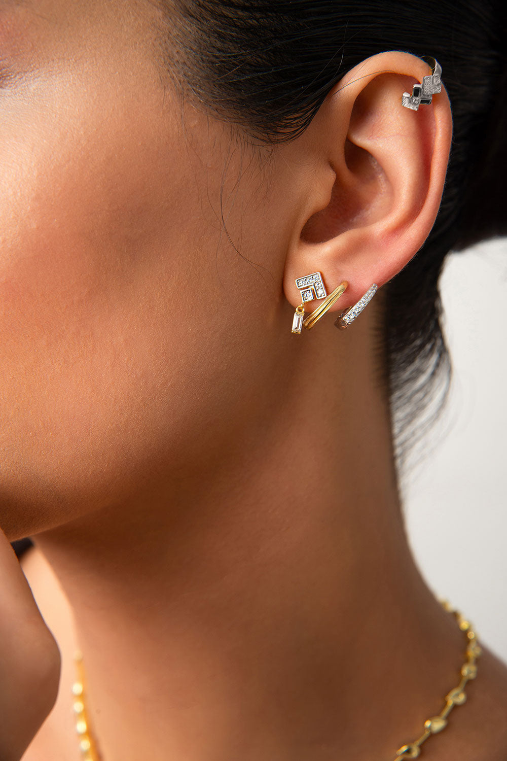 Gümüş Kristal taş detaylı 925 ayar gümüş kıkırdak küpe 05