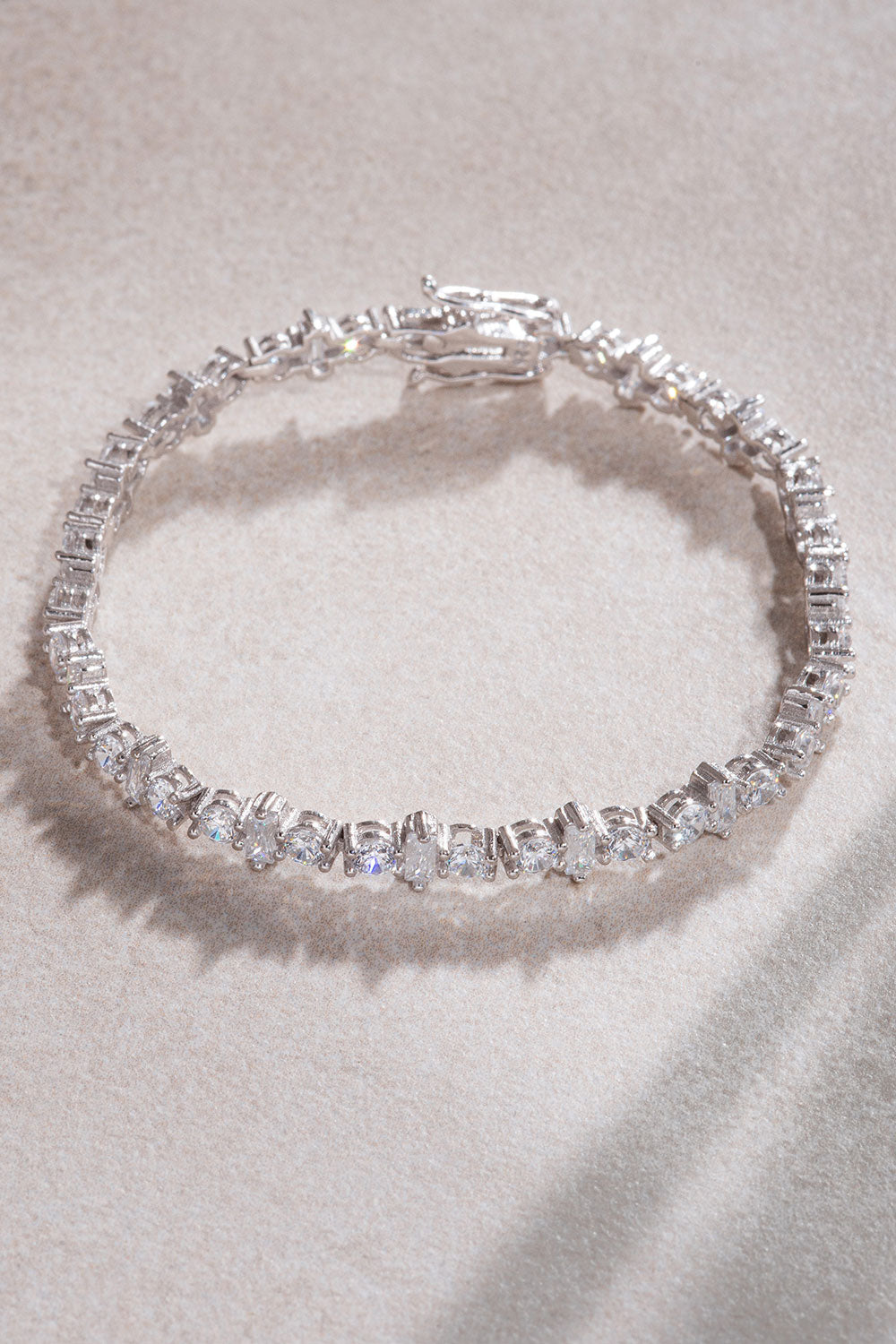 Gümüş Kristal taş detaylı 925 ayar su yolu gümüş bileklik 79